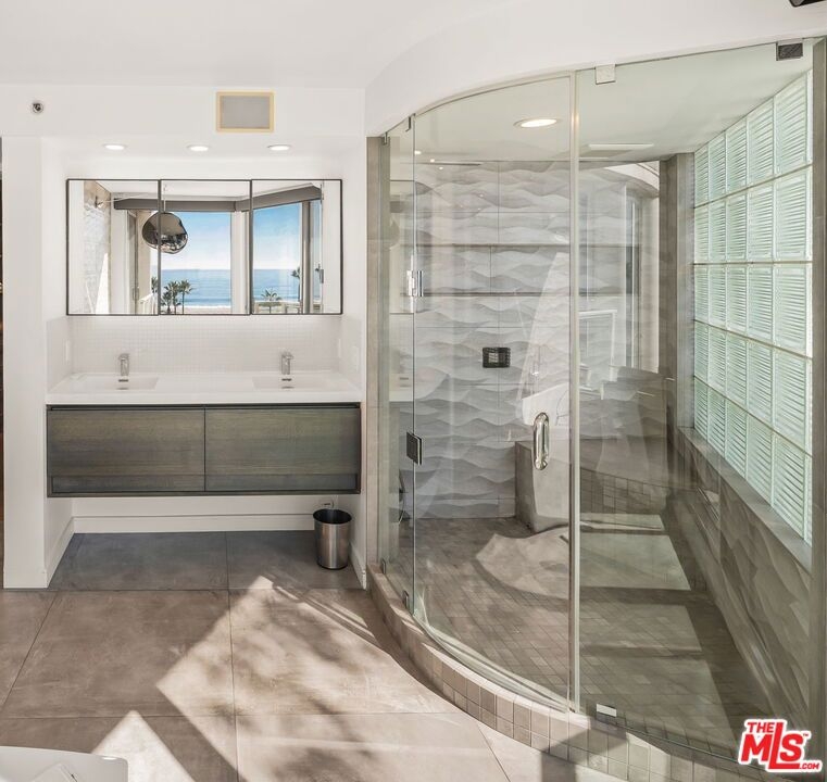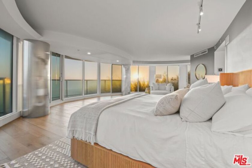 A rare, front-row Ocean Avenue residence with scale, light, and presence that cannot be replicated today. It represents an opportunity for a buyer who values an irreplaceable sense of home where daily life is shaped by light, horizon, and proximity to the ocean. An irreplaceable residence, A100 is the only two-story home in the building, offering full 180-degree ocean frontage, soaring 12-foot ceilings on the main level that flood the space with natural light and endless blue-horizon views, and a layout that simply does not exist elsewhere on Ocean Avenue.Unlike standard single-story units, A100 lives like a private oceanfront home, with true separation of spaces, dramatic volume, and uninterrupted views from both the main living areas and the primary suite. This is a rare opportunity to acquire the most architecturally and positionally significant residence in one of Santa Monica's most iconic buildings. From sunrise to sunset, watch sailboats drift by, dolphins play, and the Santa Monica Pier Ferris wheel glow against the night sky. In July, fireworks illuminate the coastlinebest enjoyed from your private ocean-view deck or the custom sea-glass light-up bar inside. Step through the private tunnel for a walk on the sand, or stroll to nearby restaurants for world-class seaside dining.Inside, every detail has been curated for comfort, elegance, and effortless living. Each of the three bedrooms includes an ensuite bath, complemented by a chic powder room for guests. The primary suite mirrors the living room's 180-degree ocean panorama and features dual walk-in closets and a spa-inspired bath with a BainUltra hydro-jetted tub, heated backrest, chromatherapy, and aromatherapy. The chef's kitchen boasts top-of-the-line Miele and Viking appliances, quartz countertops, and a 150-bottle Viking wine cooler. A spacious laundry room includes a full sink and custom cabinetry. One bedroom has been transformed into a private media lounge with seven leather reclinerseasily converted back to a bedroom or home office. Lutron solar shades adorn every window. Three parking spaces and two EV chargers add modern convenience to coastal luxury. The building's resort-style pool area has just completed a multi-million-dollar renovation. Welcome home to 101 Ocean Avenuewhere every day feels like vacation. Link to 3D walkthru: Https://my.matterport.com/show/?m=pkDQUQsxUtx&