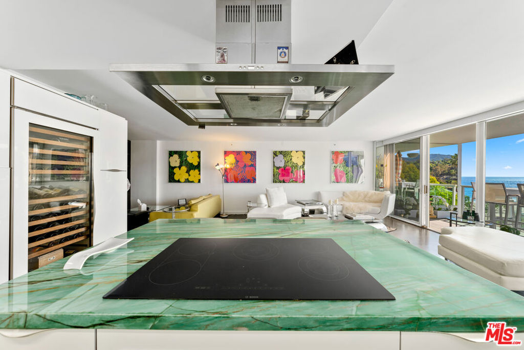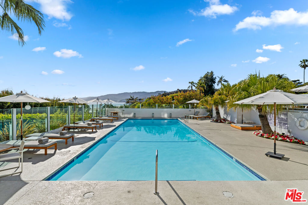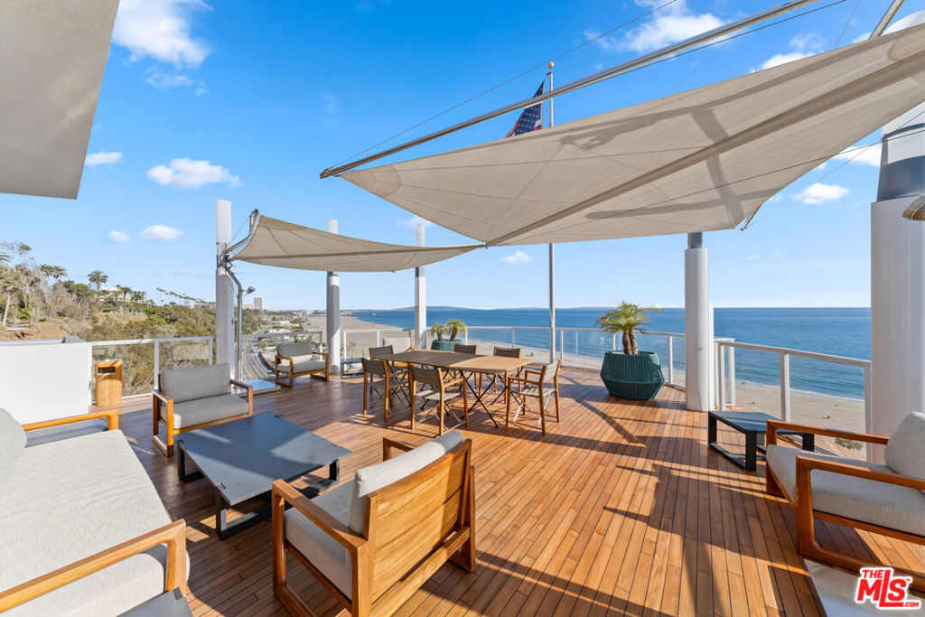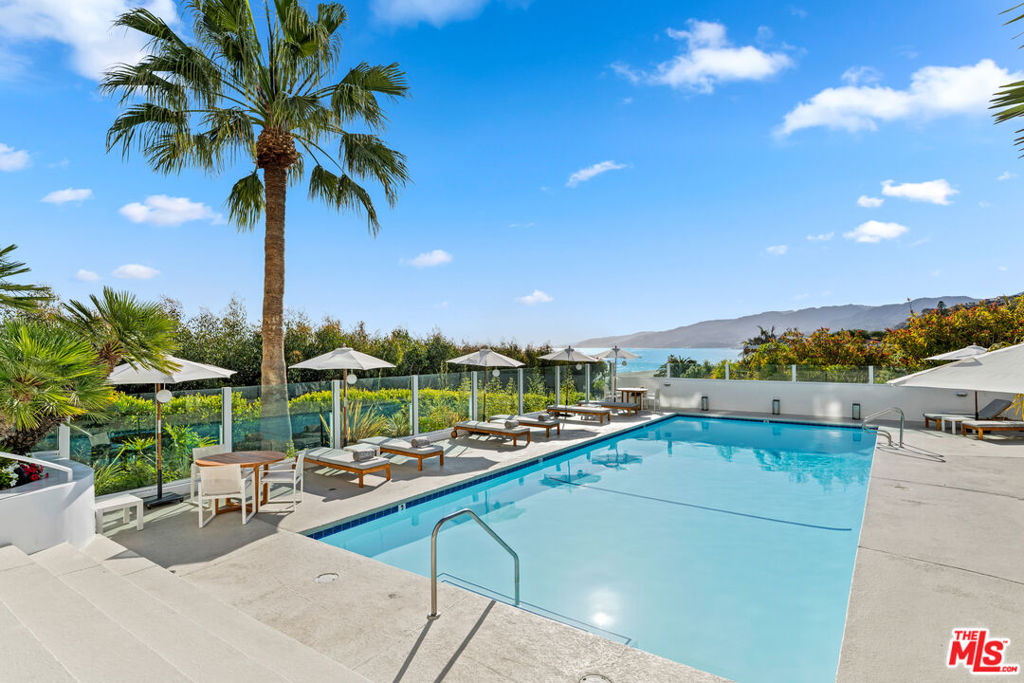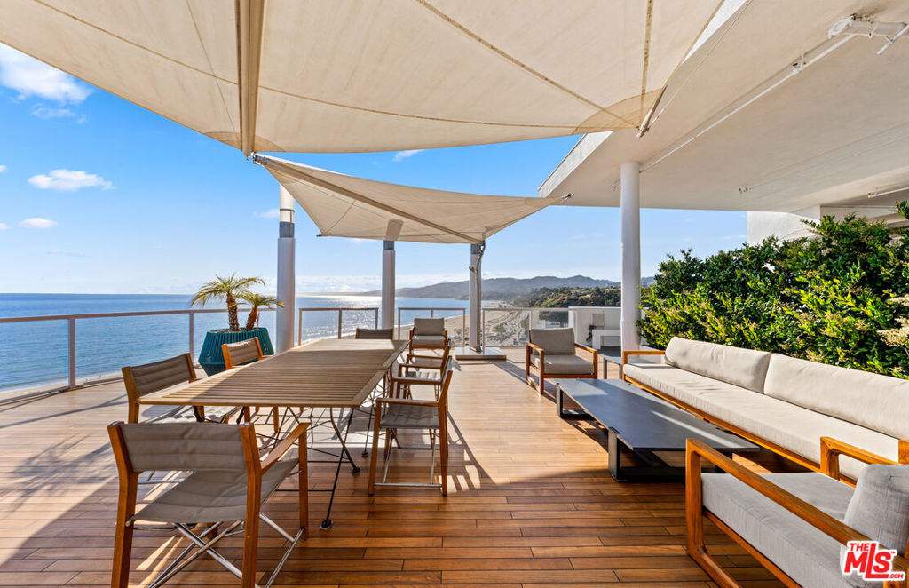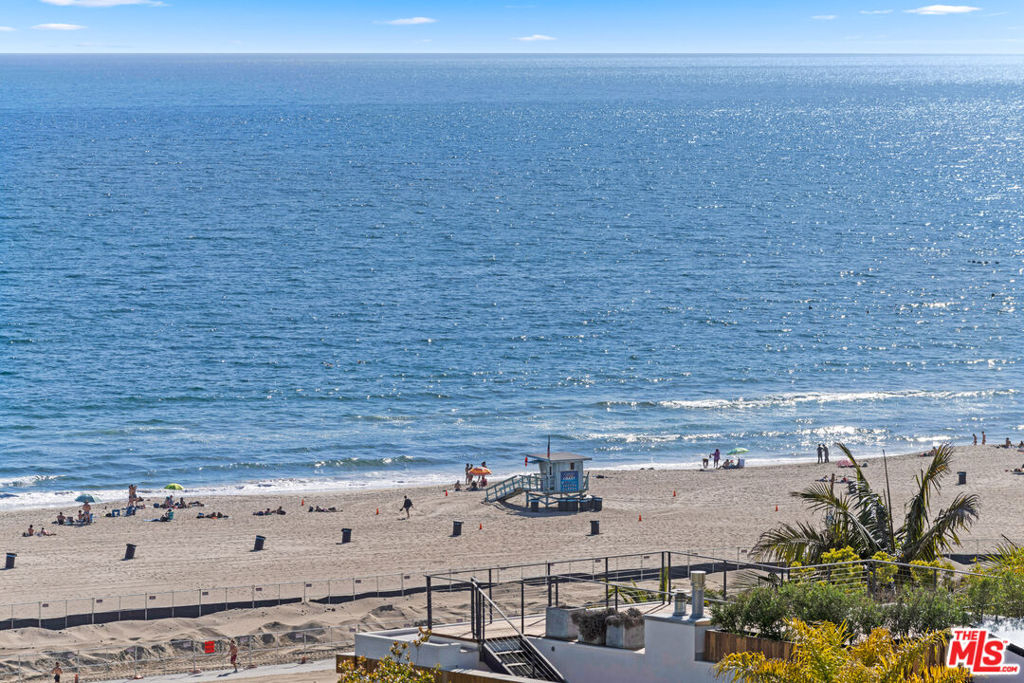 Relax and take in the beautiful views from this spacious and airy two-bedroom, two-bathroom unit with den area. Stunning whitewater and coastline views up to Point Dume from the 112 SF balcony. This recently updated unit has beautiful, herringbone hardwood floors, a large open living area, and a sitting area with a built-in entertainment system. Kitchen contains custom white cabinets and refrigerator, oversized wine refrigerator and waterfall-edge kitchen island. Master suite has access to second balcony. Both bathrooms have marble flooring and counters, double sink, and counter-to-ceiling mirrors. Experience resort-style living at the award-winning 101 Ocean building. The community contains a pool, spa, yoga studio, gym, BBQ areas, 24-hour concierge throughout and a sky lounge with 180-degree ocean views. Instant beach access via back gate and underground tunnel leads to the ocean/sand.