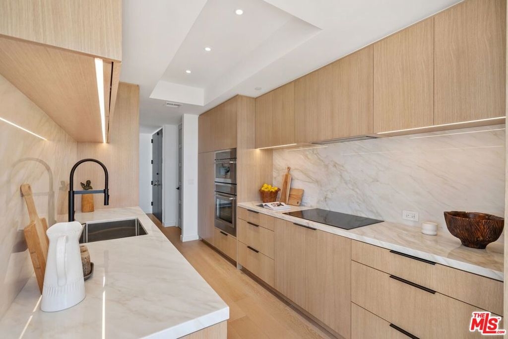 Pristine, newly remodeled penthouse unit on Ocean Avenue with stunning coastline views. This location is as good as it gets: nothing stands between you and the entrancing Pacific Ocean except the beautiful Palisades Bluffs, a jewel of the city to be enjoyed every day. Private, low key and set on one of the great parks in the city that others drive to so they can enjoy the sunset and the experience. **** This stunning, front-facing north-west situated home has floor-to-ceiling 12' high windows. The entire unit just underwent a no-expenses-spared remodel which includes: gourmet kitchen w/ custom vertical oak cabinetry, Calacatta Crema marble countertops and backsplash, plus Fisher & Paykel and Miele appliances; elegant, spa-like bathrooms w/ custom floating vanities, Calacatta Oro countertops and Kelly Wearstler lighting fixtures; and, crisp, new white oak flooring throughout The primary suite has a large walk-in closet and a stunning 8' shower with Riobel fixtures and a sexy freestanding tub. This unit has not had any occupants since being redone. **** Anchored by the open, ocean-facing living and dining area, this sleek two bedroom home is in a smaller, discreet building for an elegant and private residence for a discerning buyer. Close to great shopping and a short distance to all the amenities and eateries in Santa Monica. Enjoy the convenience of the 2 large side-by-side parking spots that complete the experience of this special and exquisitely located property. **** A terrific opportunity for someone who wants a turnkey situation on the always amazing bluffs overlooking the great edge of the west coast. Close to all the eats and treats you need in Santa Monica and on Montana Avenue. Ready for occupancy; by appointment only.