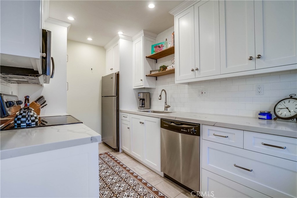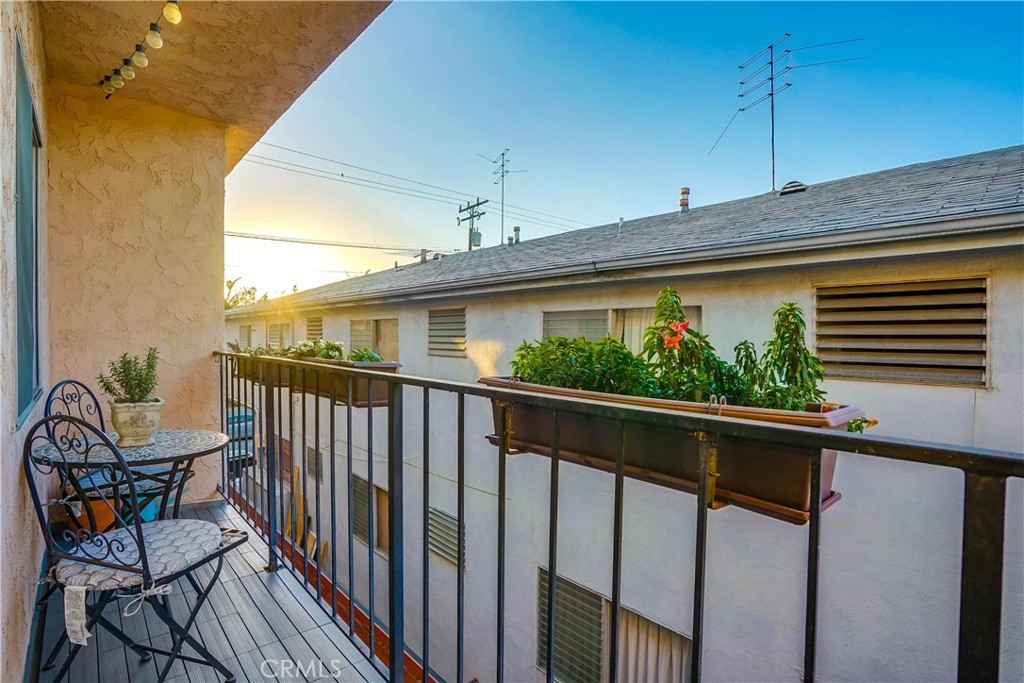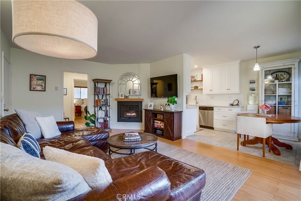 Beautiful, top floor unit in the ideal Wilmont neighborhood, north of Wilshire! Light, bright, open dining/living floor plan! Entire unit interior was recently painted. In 2018 kitchen was remodeled with custom cabinets w/soft-closing doors, including pull-out shelves, quartz countertops, tile backsplash and tile floor. Kitchen also includes a large custom pantry cupboard! Recessed lighting. Custom cabinet w/quartz countertop and a skylight for natural lighting in the bathroom. YES! LAUNDRY IS IN THE UNIT and included! Gas fireplace and radiant heat make the living room super cozy. Nice, separate office cove with built-in desk for working at home. Spacious master bedroom has a large closet with mirrored, sliding doors and wooden blinds. Relax on the balcony & enjoy the breeze. Portable A/C included! Community walkways and stairwells recently resurfaced. Property security recently upgraded. Secured garage includes one parking spot with extra storage. Walk to restaurants, shopping, beach, etc. Everything is close! LOW HOA fee! Please take the 3D tour!