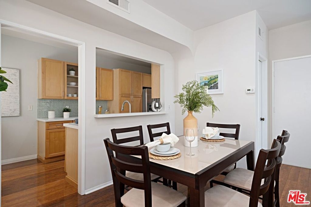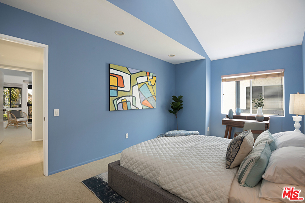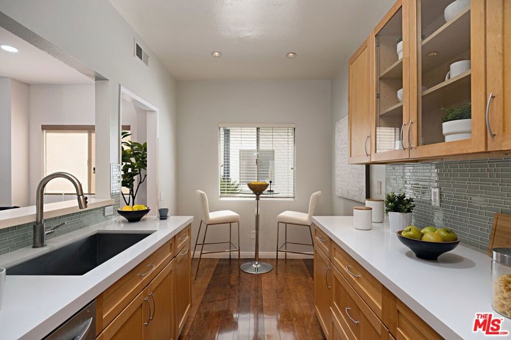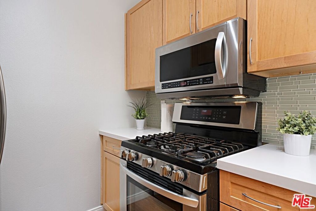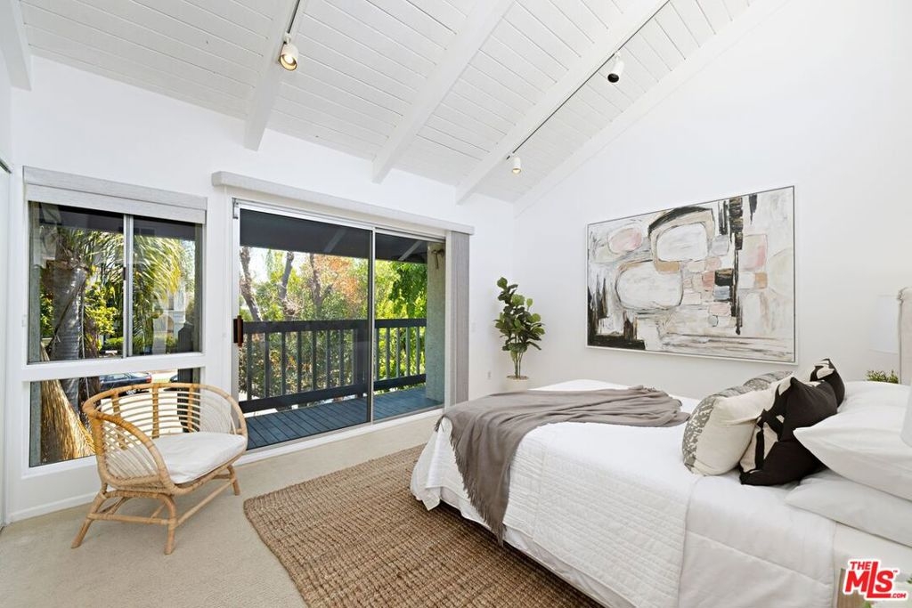 Santa Monica Townhouse -2bed/1.5bath blocks from beach! Sunny front unit. Bright open floor-plan w/stone fireplace, dining area & powder room. Updated kitchen features stone counters, stainless steel stove, double door refrigerator, built-in microwave, dishwasher & breakfast area. Private patio. Upper master featuring balcony, vaulted ceilings & skylight. Master bath features separate tub /shower and double sink. Secondary bedroom great for office /den or guest room with high ceilings and large closet. Stackable laundry closet on second floor. Direct access parking w/ 2 side-by-side assigned spots and storage. Small courtyard building blocks from Third Street Promenade, Santa Monica Pier, Beach, Montana Ave shopping & bike/running paths! Low HOA & pet friendly building.
