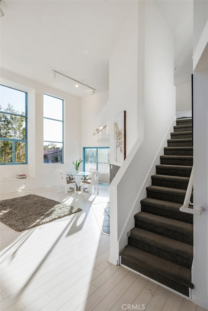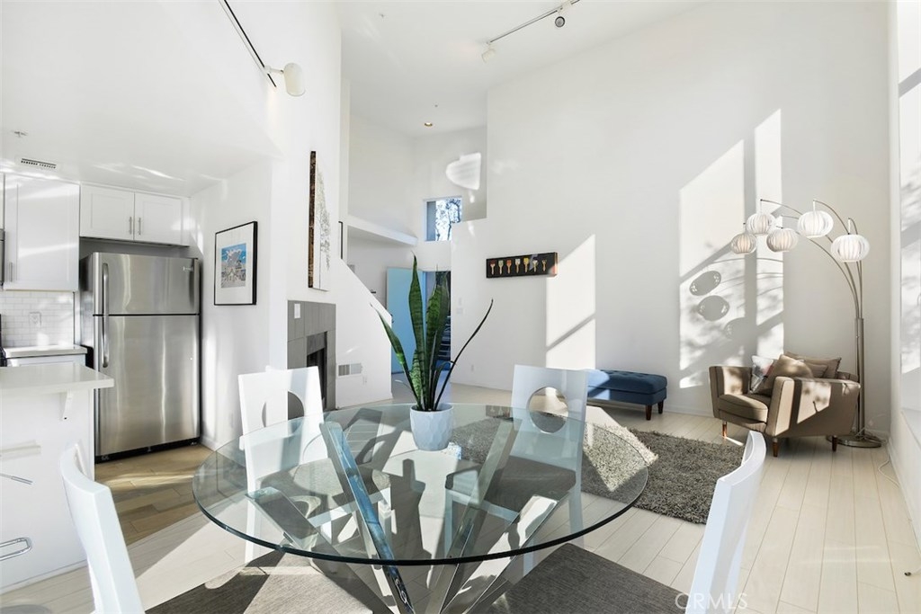 REDUCED to SELL!!! Much desired light filled Architectural find offering 20Ft ceilings in most of the home, recently updated with clean white and bright finishes, caesarstone counter tops, white wood floors, bright light illumiinating the entire unit, located in one of the most desired areas of Santa Monica creative district, front unit facing west, open floor plan, central air & heating, fireplace, loft style second bed or office, wrap around outdoor patio, 2-car gated parking with storage, rooftop sunbathing or weekend barbecue with views of ocean, Getty, downtown La, mountains and full moon beautiful California summer nights! Convenient shopping just across the street to the famous CO-OP health food market, short walk to railway station, Promenade and beach also a short walk away.
