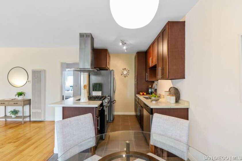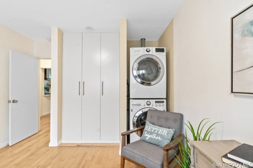 You'll feel at home in this updated 2BR/1BA filled with sunshine. This top floor condo with mountain views feels like you're in a stylishly remodeled treehouse. Featuring wood-plank flooring throughout, a modern kitchen with stainless-steel appliances, and an updated bath with shower & tub. The dining area has sliding glass doors which open to a balcony. Large bedrooms with ample closet space. The unit comes with both your very own IN-UNIT stacked washer and dryer AS WELL AS community laundry, as well as portable window AC units. 1 car gated and assigned parking. All of this ideally located just a 5 min walk to the Whole Foods 365, Virginia Avenue Park, weekly farmer's market, and the Pico Branch Library. Santa Monica College and Trader Joes are nearby, as are restaurants, shops, and the world-famous Santa Monica beaches and Third St Promenade. ACCEPTING BACK-UP OFFERS