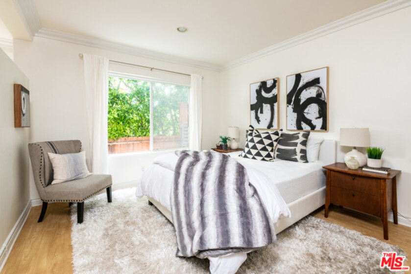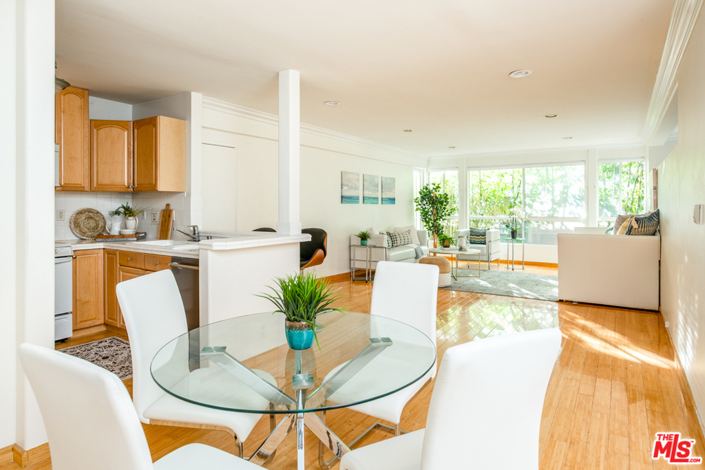 Perfect opportunity to create home and play in Santa Monica's most sought after beach location "Ocean Avenue" This bright one bed, one bath condo offers a large open living dinning area, adjoining the ample kitchen with dine at bar to enjoy more casual dinning. Ocean breezes fill this bright & spacious unit w/bamboo wood floors in the main areas with coral marble flooring in the bathroom and hallway. The bedroom is spacious and airy, offering plenty of storage space in the three large closets. Mature foliage makes for a private, serene, and quiet setting along with no adjoining walls. The building has a laundry room located at the entry of the building w/1 parking spot available for owner, in addition 2 resident/ guest parking passes available for purchase at the beach parking lot. Pet friendly HOA. Close to everything: Beach, boardwalk, Main Street designer eateries and shops, Sunday's Farmers Market, and Famed Santa Monica Pier. Come put your toes in the sand and enjoy beach living!
