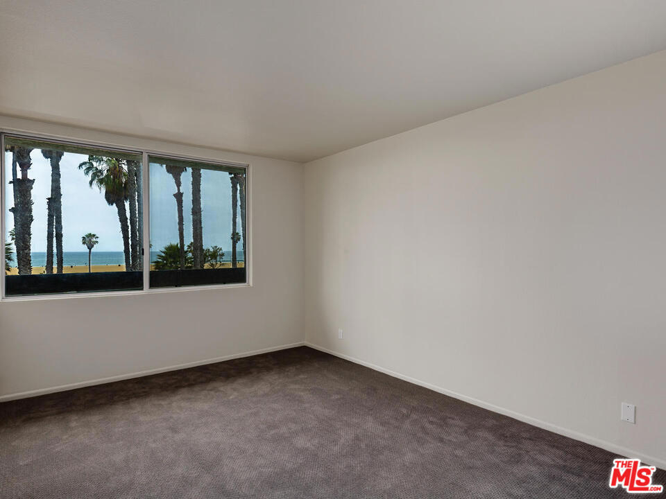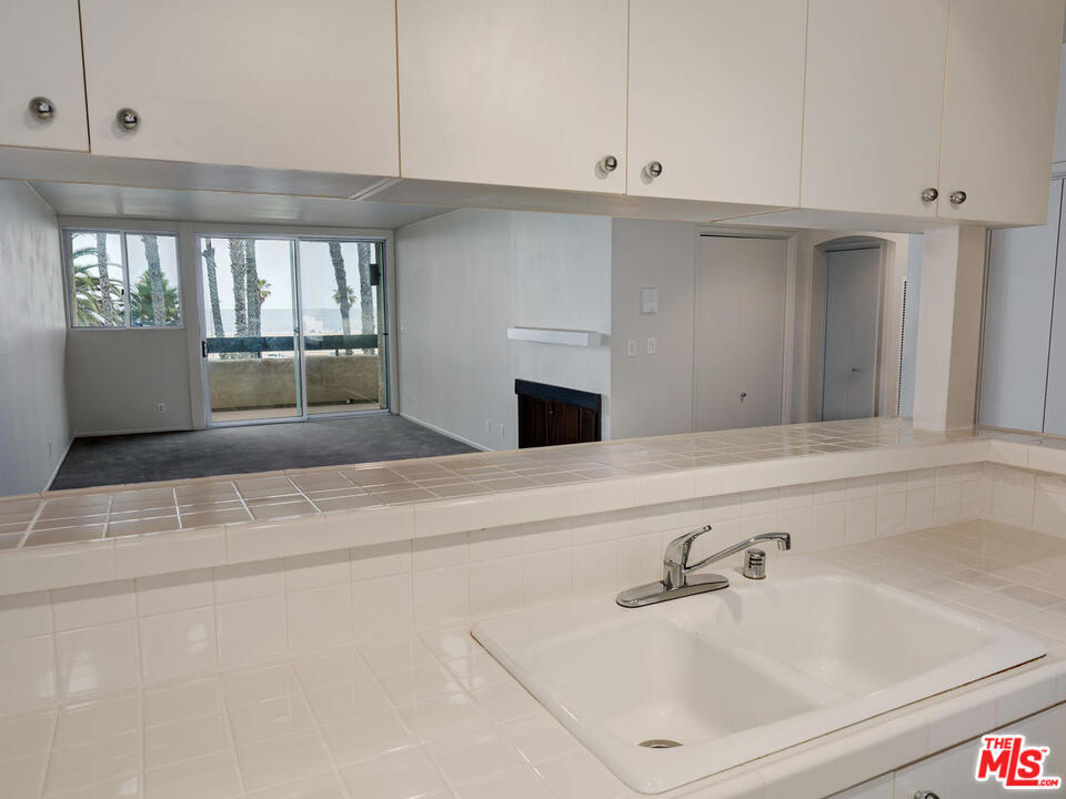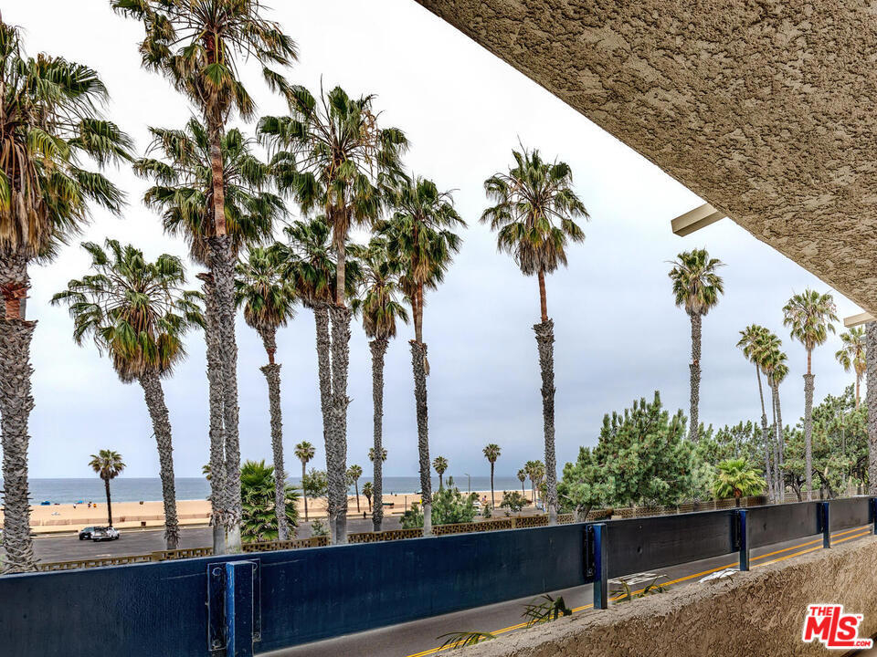 Stunning Ocean View from this lovely and spacious one bedroom and one bath condo from kitchen, living room, bedroom, and balcony!!! Freshly painted with new carpet in immaculate condition. Large open living and dining area with a cozy fireplace. Cook's kitchen with lots of cabinets and counter space. Kitchen has a pass thru bar with room to pull up bar stools. Look out at the ocean while you are preparing dinner and chatting with family and friends. Good size bedroom with lots of closet space. Extra storage throughout. Two parking spaces in community garage. Right across the street to the beach!!! Step out to the beach and many shops and restaurants. Close to Santa Monica Pier.