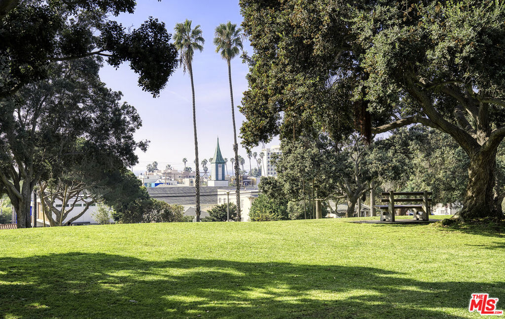 Don't miss this top-floor, west facing, Ocean Park beach pad with lots of natural light, . This property features updated countertops, custom kitchen design with bar area, open floor plan and long west facing covered patio facing the park with peak-a-boo ocean and mountain views. The primary bedroom has an oversized walk-in closet. Enjoy the ocean breezes while sipping coffee in the morning, or opt for a beautiful sunset while having an evening cocktail.The complex features a community gym, pool, bike storage & laundry room all within steps from your unit. Gated parking for added security. Enjoy the strolls and picnics in Hotchkiss Park which is conveniently located across the street. Nearby shopping, restaurants at the 3rd St. Promenade, the Santa Monica Place Mall, Rose Avenue, Abbot Kinney Blvd & more (all a walk or bike ride away). Near local public transportation. NOTE: This is one of the best run HOA's in the city w/ incredibly low HOA dues of $263 per month that includes EQ insurance, features approx $500,000 in building reserves, a new roof & is seismic retrofitted compliant for the city. See private remarks for showing protocols.
