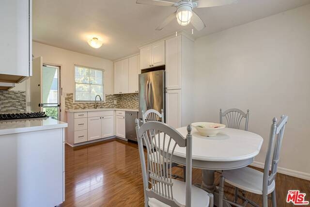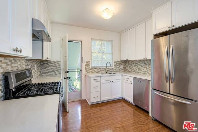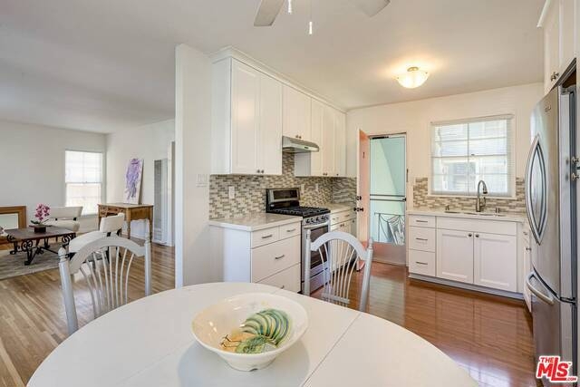 Ground floor unit with direct entry and light and bright. The kitchen was redone and has all stainless steel appliances. There are hardwood floors and lots of closet/storage space. There is only one common wall and there is access to a courtyard for relaxing. The bedrooms are extremely generous. Close to Whole Foods and restaurants on Pico Blvd. This location is a "sweet spot" and close to the beach etc.