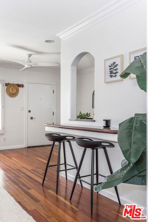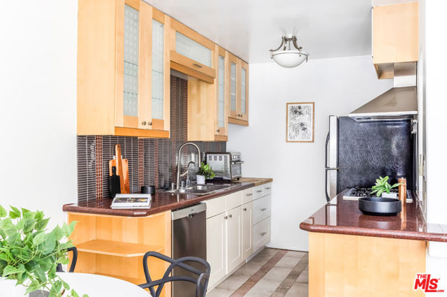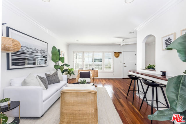 Amazing home perfectly situated in a stellar Santa Monica location. This wonderful property offers a generous main living area showcasing large windows with plantation shutters, gleaming hardwood floors, arched doorways, custom paint, crown molding, and recessed lighting. The dazzling updated kitchen boasting stainless steel appliances, an impressive tile backsplash, a breakfast bar, and granite counters is sure to please the chef in the family. A sizable comfortable bedroom accented with crown molding, recessed lighting, plentiful storage, and glowing wood floors becomes your private retreat. The delightful light and a bright bathroom with an expansive vanity completes the space. The building features great curb appeal with a contemporary flare, and the community offers excellent amenities such as an in ground pool, spa, sauna, gym room, club room with pool table, and secured garage parking. Positioned in coveted Santa Monica close to Main Street, Ocean Park Boulevard, and the beach. For dining and entertainment, it is a quick jaunt to the 3rd Street Promenade, downtown Santa Monica, Santa Monica Pier, Venice Beach, Venice Boardwalk, and more!