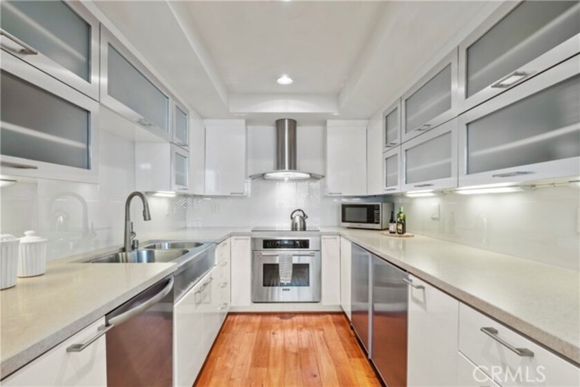 Enjoy the best Santa Monica has to offer in this updated two-bedroom, two-bathroom condo, conveniently situated four blocks from the oceanfront at Palisades Park, and just minutes away from the most popular shops & restaurants Montana Avenue has to offer. Create gourmet meals in the sleek contemporary kitchen, complete with top-of-the-line appliances, or enjoy a cocktail with friends on the large private patio. This special unit has a fantastic flow, rich wood cabinetry, and plenty of natural light. The beach is just a short walk away, but the pool is the icing on the cake. This unit is serenely quiet, yet so very close to all of the action & recreational destinations. Don’t miss it! This one will go quickly