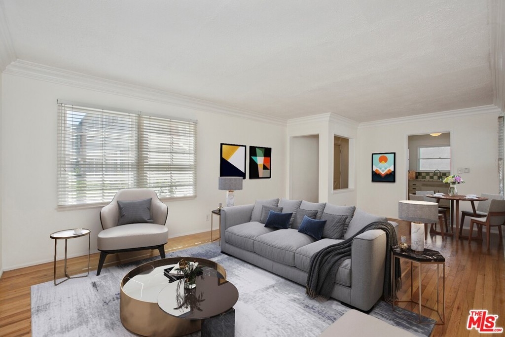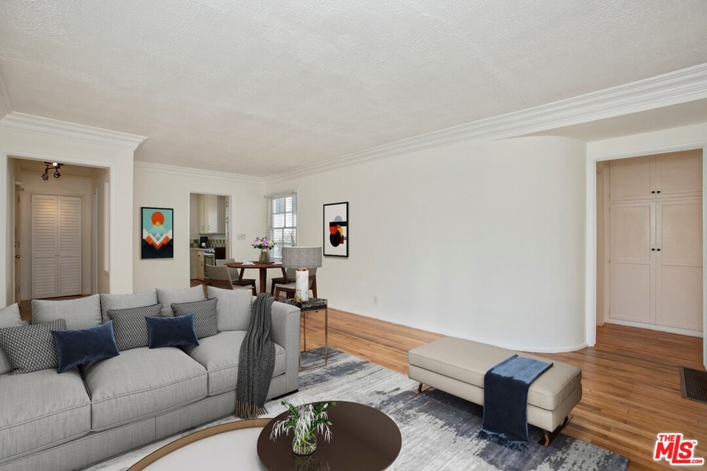 This checks most of the high demand boxes; Santa Monica's premier North of Montana location, a few short blocks from the bluffs and stairs at Palisades Beach Park, horseshoe, double lot configuration around a verdant center courtyard, lower first floor 2BR/1 BA corner unit, large picture window overlooking the courtyard,. warm hardwood floors throughout the open floorplan, plaster walls, original crown molding, and spacious walk-in closet. Authentic period charm has been spared ill-advised attempts to modernize. Shared garage off the alley. *Pictures are virtually staged.*