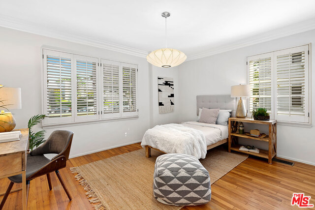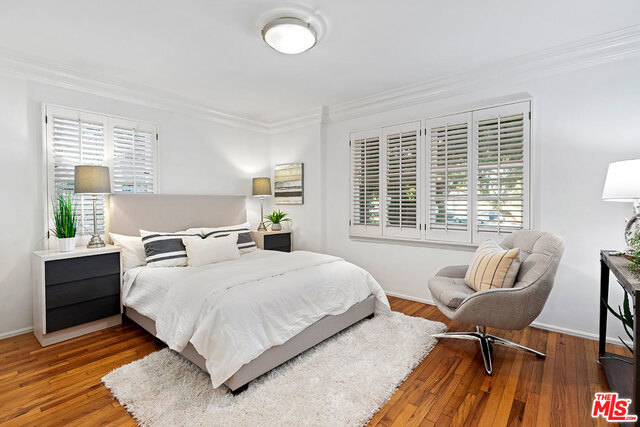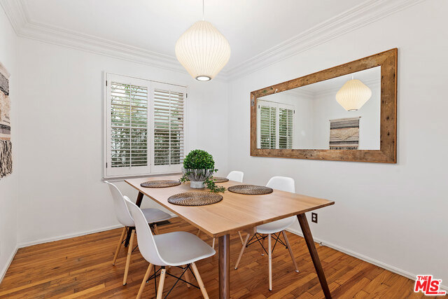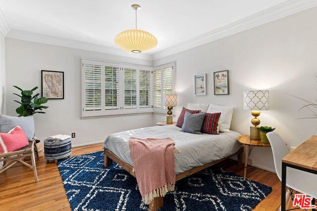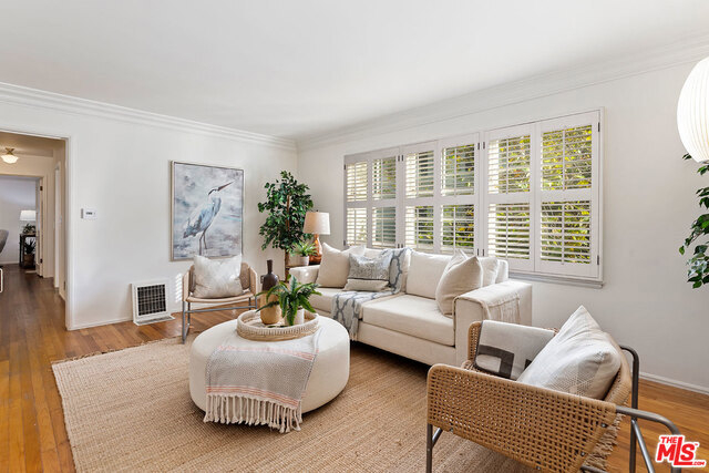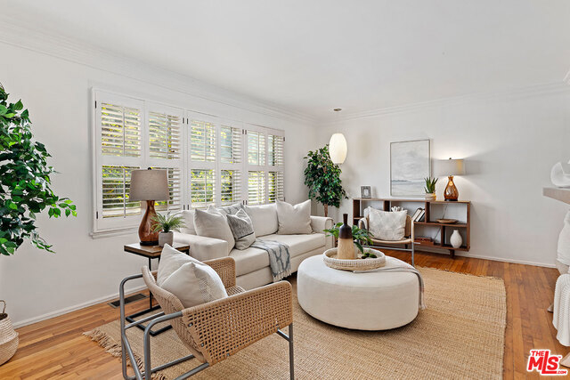 Light, bright, and beautiful 3 bedroom 2 bathroom condo is located in a charming courtyard garden complex. This first floor unit features spacious bedrooms, tastefully updated bathrooms, a formal dining room, and ample storage space. Hardwood floors, plantation shutters, and crown molding are throughout. Your private laundry is just outside your front door and one car garage space is in a shared garage off alley includes additional storage. Located in the Roosevelt Elementary and Lincoln Middle School Districts. This home is moments from the beach, Third Street Promenade, Palisades Park and shops and restaurants on Montana Avenue.