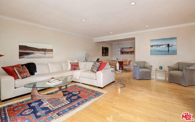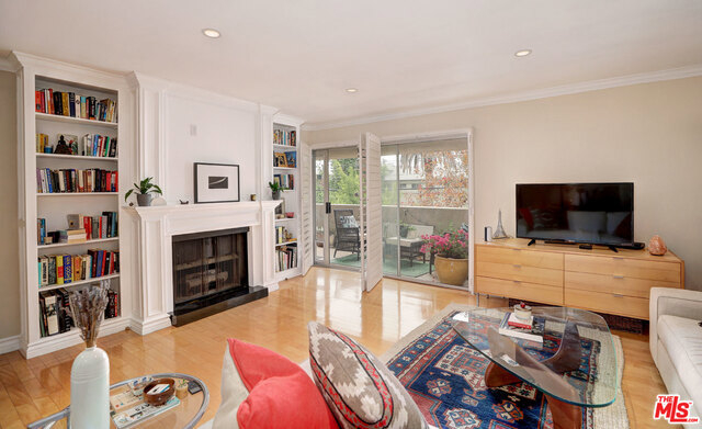 Spacious and bright 1 bed / 1 bath turnkey condo in prime Santa Monica. Features include a large living room with wood floors, recessed lighting, fireplace, and custom built-ins; separate dining area; and an impressively renovated kitchen. Bedroom has new carpet, ample closet space with built in shelving and drawers. Wonderful NW facing balcony with access from both the living room and bedroom. One gated direct access parking space. Located 1 block from Montana Ave shops and cafes and 7 blocks to the ocean!