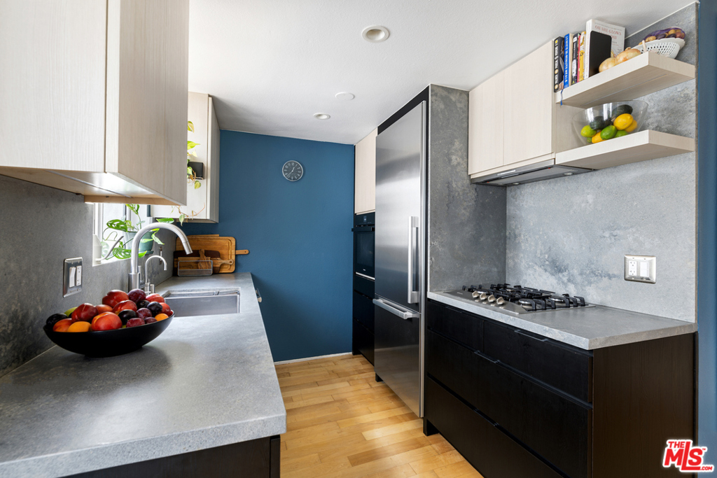 Designer Renovated 2-story Stunning Townhome in an exceptional Ocean Park location just blocks to the beach and ocean. This light-filled, breezy & spacious Santa Monica home located in a private, serene & highly desirable gated building is surrounded by lush landscaping & offers an ideal open floor plan w/ beautiful hardwood floors, plantation shutters, designer finishes & French doors leading to a cozy private patio. Modern & sleek kitchen fully remodeled in 2018 features high-end Miele appliances, beautiful Caesarstone countertops, custom lighting & cabinetry. Remodeled guest bathroom also features authentic custom cabinetry, Caesarstone counters + Miele washer and ventless dryer. The master bedroom upstairs is a perfect retreat w/ a remodeled closet, custom wood shelving & custom flooring. A fully remodeled upstairs bathroom has stunning floor-to-ceiling Italian marble tile, all high-end fixtures & appliances & Kohler plumbing. Addl bedroom on 2nd level. The HOA includes earthquake insurance, a workout room, spa, a private paddle tennis court, secured bike room, large 2 car parking spot w/ extra storage. This stunning home has everything for perfect coastal living!