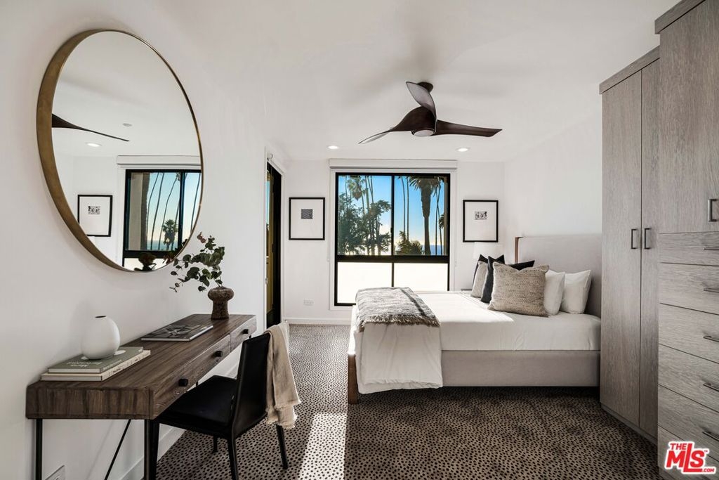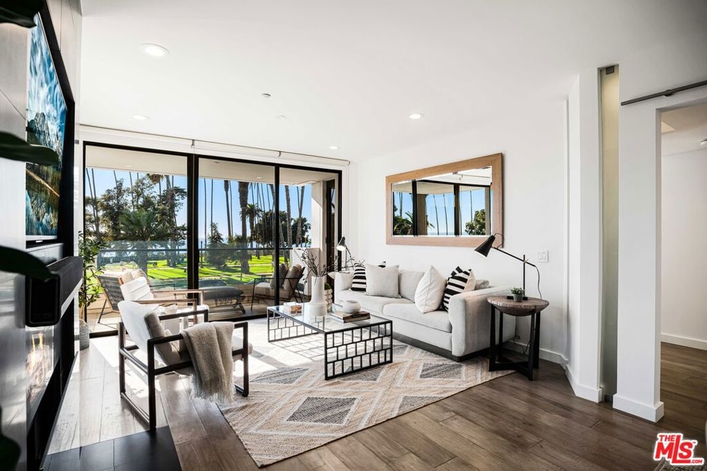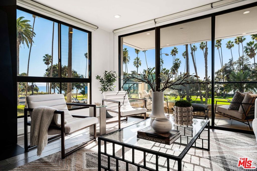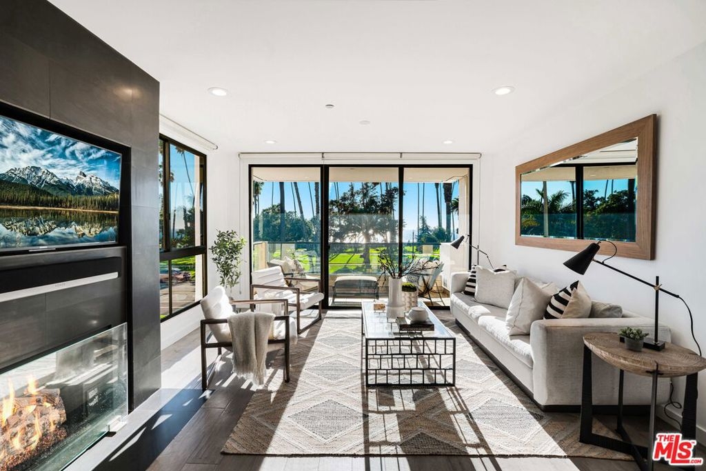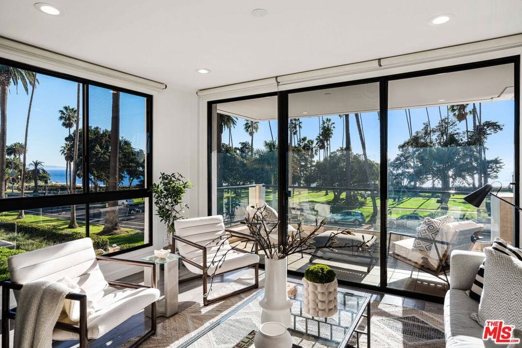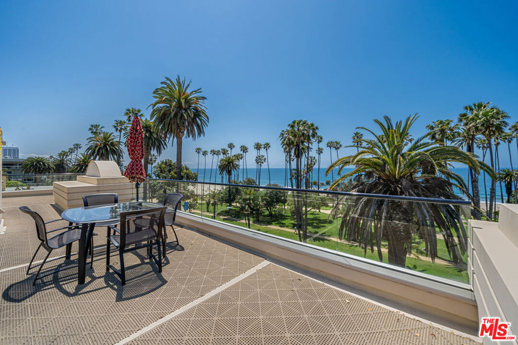 The absolute best ocean view condo ever offered for sale in the boutique, prestigious and premier full-service residential building at 701 Ocean Avenue in Santa Monica. This front row, ocean facing residence has been beautifully reimagined and recently remodeled with a stunning contemporary finish. The interior design features a bright open floor plan with L-Shaped windows/doors to capture the rarest ocean view perspective in the building. The living room showcases a beautiful modern fireplace, large dining area and floor to ceiling sliding doors that open to an expansive private patio. The primary suite features direct ocean views, patio access, large walk-in closet, custom built-in storage and incredible bath suite with double vanity, shower and soaking tub. The gourmet kitchen has been custom designed and renovated to include oversized countertop space and an abundant amount of storage. Other features include an entry powder room, separate laundry room and custom built-ins for both bedrooms. Hands down one of the best and only ocean view rooftops in the city with pool, spa, outdoor kitchen, dining areas and loungers. Building amenities include elegant lobby with 24 hour concierge/security, gym, secure parking garage w/guest parking, private storage unit, banquet room. Property is perfectly located in Santa Monica, North of Montana, with amazing walkability to the beach, park, Montana Ave and the best neighborhood restaurants and shops. Turn-key, move-in ready with exceptional attention to detail and the feeling of a boutique hotel. A truly one of a kind condominium residence.