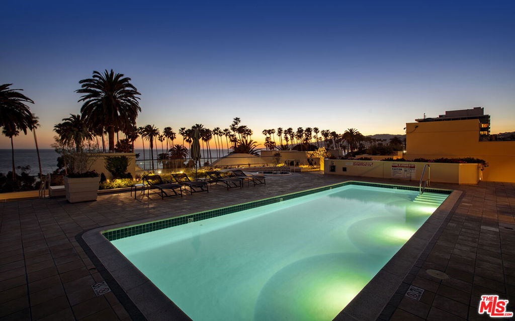 Prepare yourself for a spectacular experience in a designer perfect home in one of Ocean Avenue's most exclusive full-service buildings. Upon entering this sophisticated, impeccably remodeled serene retreat, you will be instantly impressed with the exquisite aesthetic throughout. This single level corner unit is located in the tranquil northeast portion of the floor with two sides of expansive windows and glass doors, bathed in natural light. There are beautiful views of mature trees from every vantage. Wide plank, pale wood floors complement an inviting, open floor plan, ideal for entertaining. Two bedrooms and two and a half baths plus den in 1,924 SF comprise this sensational home. The den, adjacent to the living and dining areas provides a feeling of an open, expansive, airy flow. A special, artistic powder room is located in the central hallway. The open, remodeled gourmet kitchen features top of the line appliances. There is a separate enclosed laundry room. The refined master bedroom with three closets has direct access to a balcony with peek-a-boo ocean views, indeed a sanctuary. The luxurious marble bathroom features new cabinets, counters and a frameless shower door. Enjoy socializing on two terraces with views of lush green foliage. This highly desirable building has a most impressive, spacious rooftop with pool, spa, sundeck and entertaining areas w/built in barbeques. Additional building amenities include a 24-hour concierge, on-site management, controlled access, two side by side parking spaces, guest parking, fitness facility and large banquet/conference room w/an adjacent catering kitchen. Located close to restaurants, shopping and Palisades Park, it is also across the street from the Montana stairs where there is a bridge to the beach. You must come see this property - come live this ideal Santa Monica lifestyle!