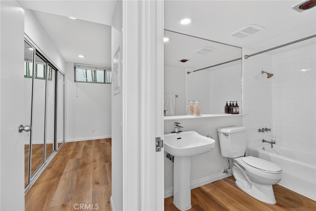 Step into this bright, sun-filled, architectural townhouse offering a 2-bedroom + loft layout designed for both comfort and style. The reverse floor plan places two bedrooms on the first level, sharing a full bathroom—perfect for privacy and separation from the main living spaces. Upstairs, the main living level is filled with natural light and anchored by dramatic windows that soar to the high ceiling, creating an open, airy atmosphere. This inviting space includes a cozy living room with fireplace, dining area, a well-appointed kitchen with Viking appliances, and an additional bathroom—ideal for everyday living and entertaining. The top floor features a versatile loft, offering the flexibility of a home office, guest space, or potential third bedroom. Step outside to the upper deck, an ideal spot for hosting friends or enjoying coastal evenings. Additional highlights include full-size side-by-side laundry, central A/C and heat, fresh paint, and two secure side-by-side parking spaces. Set within a well-maintained community, this home is just minutes from Montana Avenue, Main Street, and the Santa Monica beach, with easy access to world-class dining, shopping, parks, freeways, and public transportation. Whether you’re looking for a primary residence, a coastal retreat, or a smart investment, this Santa Monica condo delivers exceptional light, location, and livability.