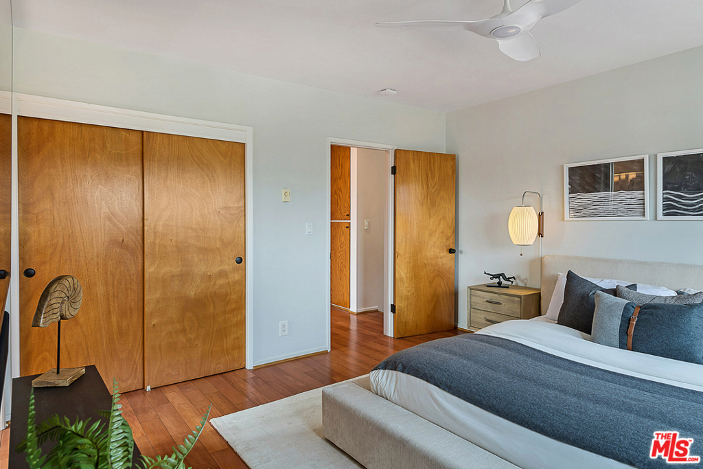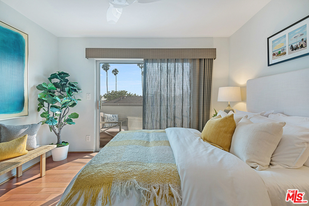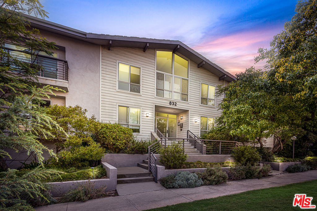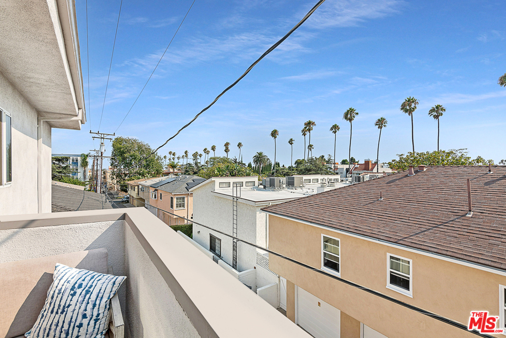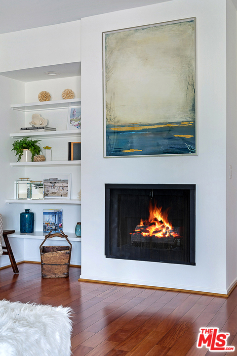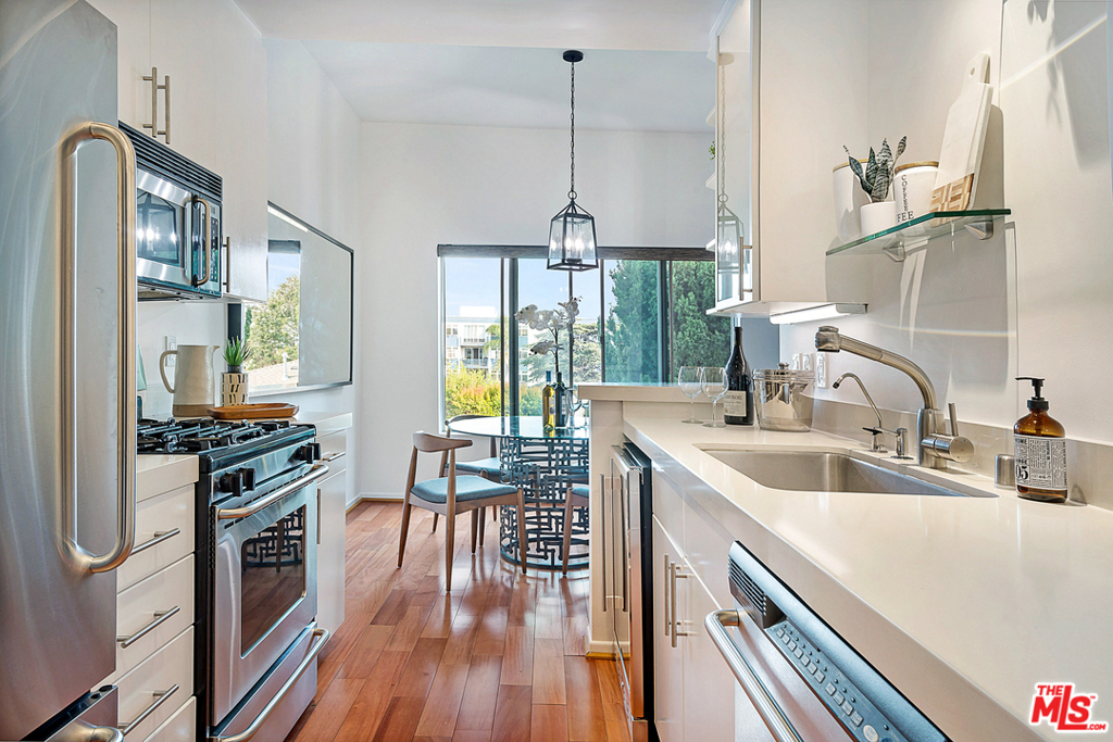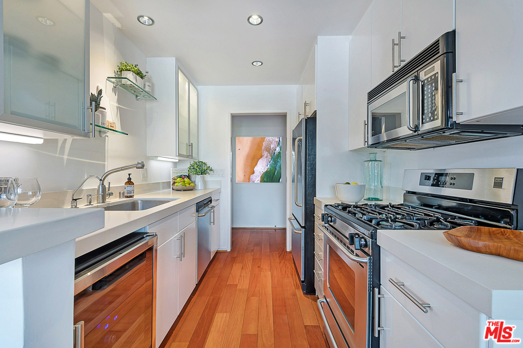 Chic California Contemporary top-floor Santa Monica Condo awaits! Move right into this 2Bd/2Ba primely located Open & Light corner unit. Just a few buildings South of Montana Ave's finest Dining, Shopping, Schools and only minutes to the Beach! The inviting floorplan includes large Living Room w/cozy Fireplace which opens out to the Dining area with light filled windows ideal for Entertaining. Updated Kitchen features ample cabinet space, caesar stone countertops, and stainless appliances including a wine fridge. Hardwood floors located throughout. Spacious Main Bed with walk-in closet and en-suite Bath, 2nd Bed includes attached balcony. Unit is wired for Frontier Fios internet, ideal for working from home. Gated parking with 2 tandem spaces including 2 charging stations and extra storage. This Beachy Gem is Not to be Missed!