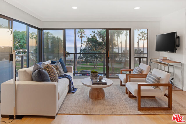 Exceptional Penthouse with spectacular Ocean views in an idyllic Ocean Avenue location. Beautifully designed, be the first to live in this recently renovated Contemporary condominium located on the top floor. This front-facing residence features an open floor plan with walls of glass, granite countertops, natural maple wood floors, and a private sundeck. Art walls and glass handrails surround the dramatic loft space with soaring ceilings. The building has controlled access, side-by-side parking and gated garage. Located close to all Santa Monica has to offer including Third Street Promenade, dining along Ocean Avenue, Montana Avenue shops, and Palisades Park.