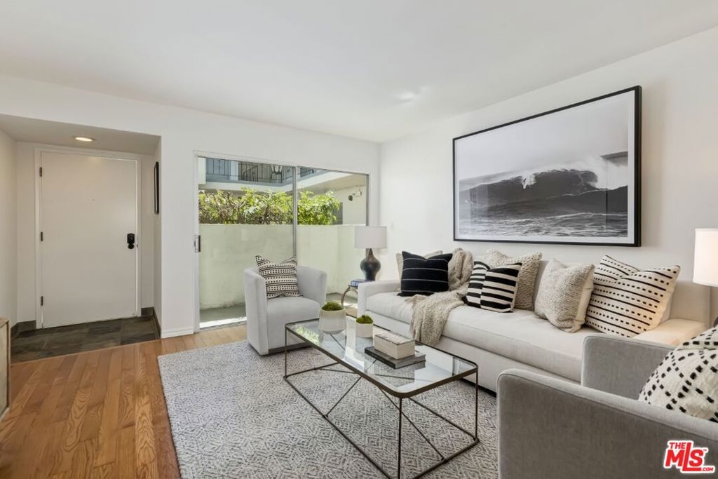 The location doesn't get any better! Just 1.5 blocks from the sought-after and desirable Montana Avenue shopping and restaurant destination. Charming and well-maintained 21 unit building with secured entrance and gated parking. Sunny courtyard leads to Unit 103 on the main level. Over 800 sq ft of living space including hardwood and slate tile floors, fireplace in living room, updated kitchen and bath, plus outdoor patio. Close proximity to the laundry room. One parking spot, plus storage. Low HOA dues, which include: water, common area maintenance, roof & earthquake insurance. SEE DOCS FOR OFFER GUIDELINES.