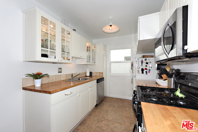 Minutes to the beach from this beautifully remodeled 1 bed, 1 bath charming walk-up style condo with upgraded wood floors, newer fixtures, and fresh paint throughout. Great functional floor plan with eat-in kitchen off the living room, and hallway that separates the bedroom and bathroom from the living areas. Newer kitchen with butcher block countertops and ample cabinet space. Updated bathroom with shower/tub combo. Community features an extra large rooftop deck, secure building entrance, low HOA dues. Small 10-unit complex. 1 car assigned gated parking spot. Prime Wilshire/Montana neighborhood adjacent to the beach, shops, restaurants, and the Santa Monica Bluffs.