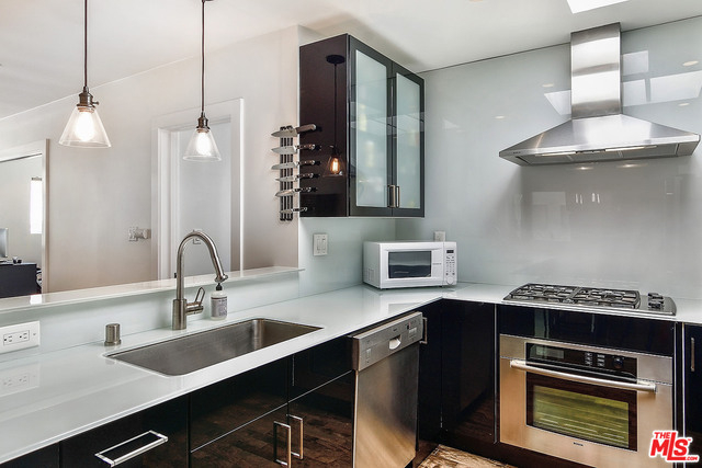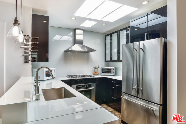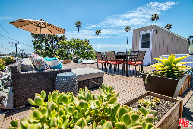 Located in the heart of Santa Monica, this ultra chic top-floor condominium features an open floor plan, one common wall, wood floors, walls of windows, and skylights throughout. Generously sized bedrooms with en-suite baths, luxury designer finishes such as mosaic tile, opaque glass counters, walk-in shower, and deep soaking tubs. Gourmet kitchen with a vented range hood, stainless steel appliances, breakfast bar, and dining area. Enjoy spending your summer days on the expansive rooftop patio with 360-degree views where a fantastic coastal breeze and custom bar with wine cooler awaits you. Just seconds from all that Montana Ave offers, award-winning schools, and the beach, the location of 947 18th st will be the envy of all. Stackable w/d, two parking spots and additional storage, with low HOAs that include maintenance, gardening & earthquake insurance. Franklin Elementary!!