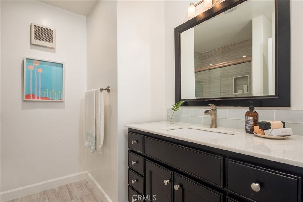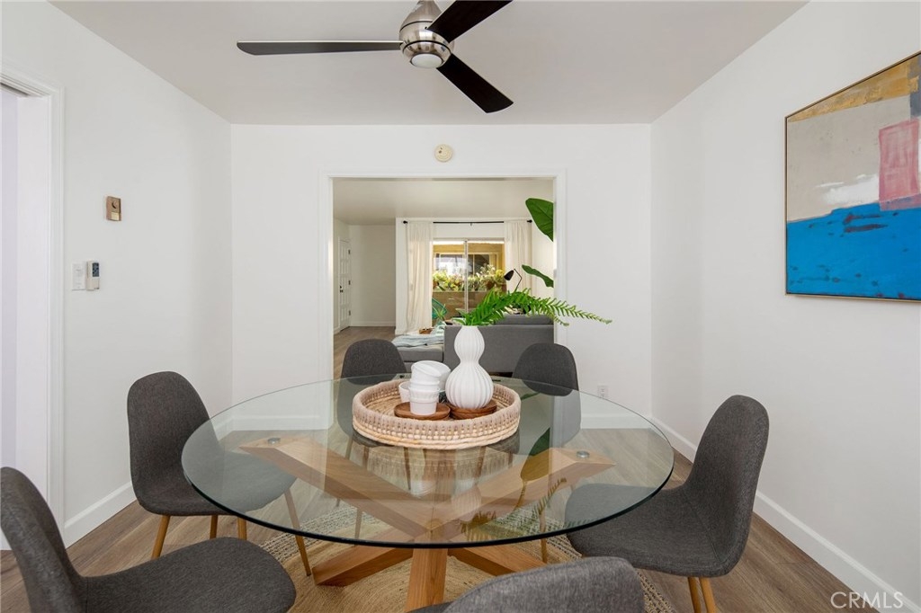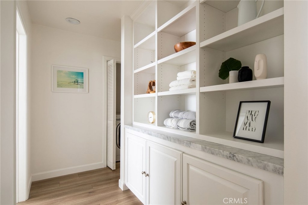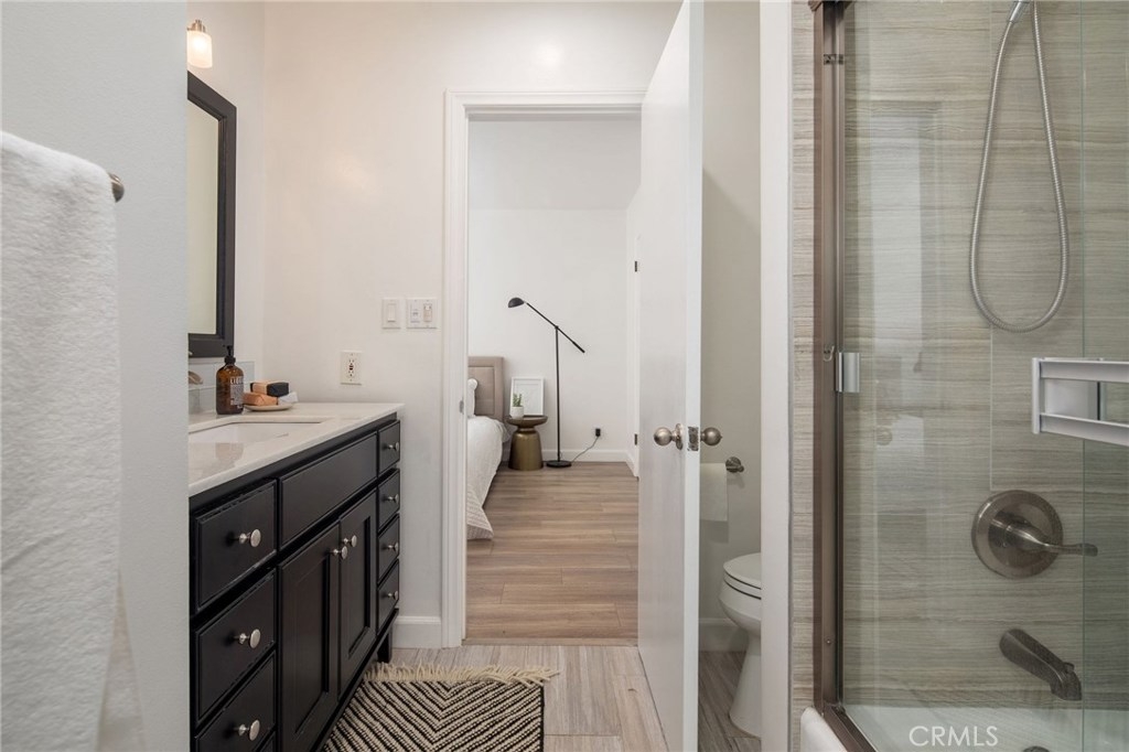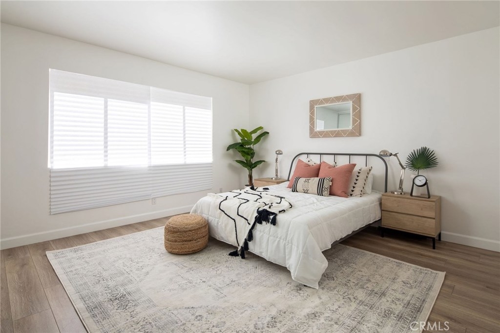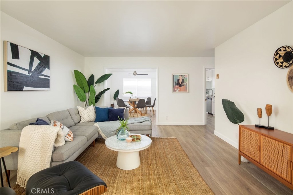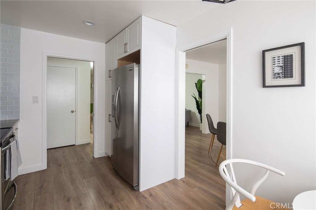 Tastefully remodeled, turn-key 2-bedroom/2-bath Santa Monica condo on a tree-lined street! Walking distance to Bristol Farms, Milo & Olive, Douglas Park, just a stone’s throw to trendy eateries and shops in Brentwood, and minutes from the beach - where the popular Santa Monica Pier and the classic California beach life await! The lovely courtyard takes you to this beautiful unit with plenty of storage space - do you dream of having a walk-in closet for your pantry? Engineered wood flooring throughout, a large living room with access to the patio where you can sip your coffee (or cocktail!) while you delight in the gentle ocean breeze. Bright separate dining room with a large window is perfect for fabulous entertaining. The remodeled kitchen with granite counter tops, subway glass tile backsplash, all stainless steel appliances and range hood is ready for the chef in you! The kitchen has a bright breakfast nook with a large window ready for your mornings to start happily. The hallway has a beautiful built-in cabinet with a marble top and recessed lights. The two Master Suites have abundant closet space; one with a walk-in closet - both have chic bathroom vanities with quartz countertops. A European washer and dryer combo is inside a closet in the unit in addition to the community laundry room! Easy access to one-car parking space is in the detached alley garage. Take a stroll in this highly-desirable neighborhood with a walk score of 92 - a walker's paradise! Welcome home.