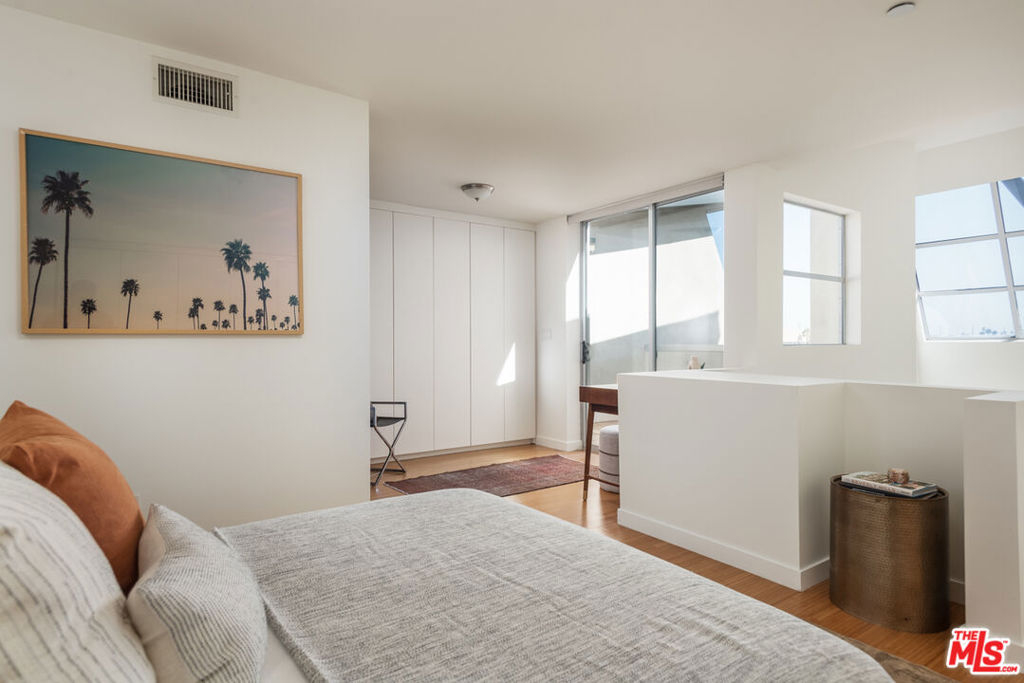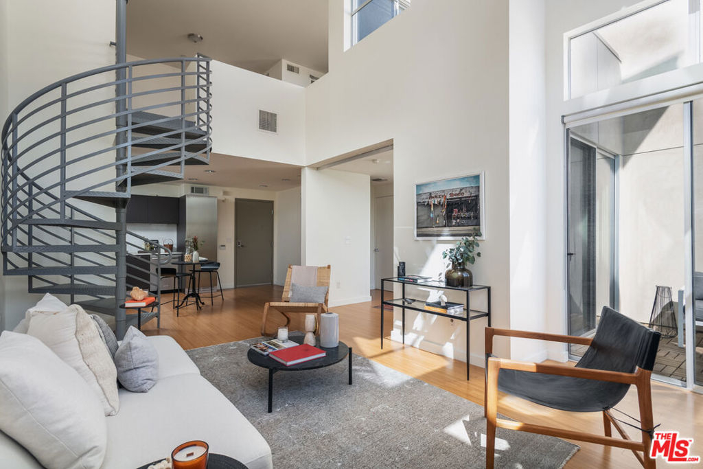 Modern and bright loft-style condo with EV charger. This top-floor, south-facing unit with soaring 20ft high ceilings allows for abundant light throughout the day. Located on the quieter side of the building creates a work-from-home environment free of traffic noise. Then when it's time to step away from the desk, you can soak up the sun and feel the ocean breeze from one of the two private balconies. Enjoy modern conveniences such as central AC/heat, in-unit washer/dryer, and security system with key fob access. When you need to step out, the open design of the building allows for fresh air and sunlight throughout the common areas. The underground secured garage has two side-by-side parking spaces with a private EV charger and room for additional storage. Broadway has dedicated bike lanes to the Promenade and the Pier, ideal for enjoying beach living while leaving the car at home. The unit is conveniently located just blocks from Whole Foods, Trader Joe's, Co-Op Market, Tartine, Santa Monica Brew Works, Water Garden complex, parks, gyms, and the Expo-line. Low HOA fees include earthquake insurance.