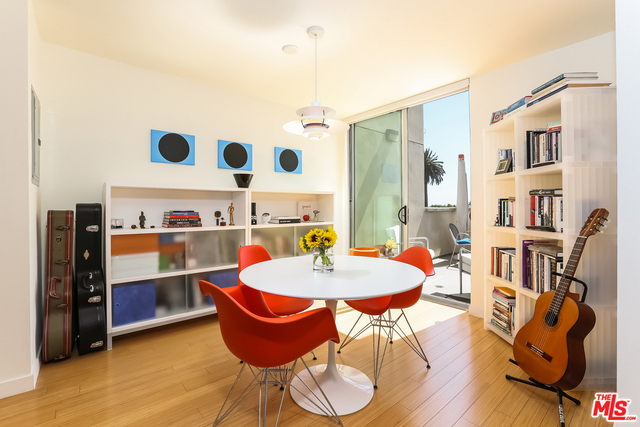 Modern, light-filled, top-floor loft with 19-foot ceilings and soaring skylight windows. Located in heart of SM's high-tech, medical, entertainment corridor. Unit features Ocean View balcony, high-end Boffi kitchen cabinets with Caesarstone countertops, stainless-steel appliances, custom-designed bathroom sinks/cabinets. Custom electric blinds, professional built-in closets, security system, video intercom system, key fob entry to building, DIRECTV-ready and cable prewired. Den can be converted to second bedroom. Bonus side-by-side parking next to elevator. Bosch W/D in unit. Design Within Reach furnishings also available for purchase.