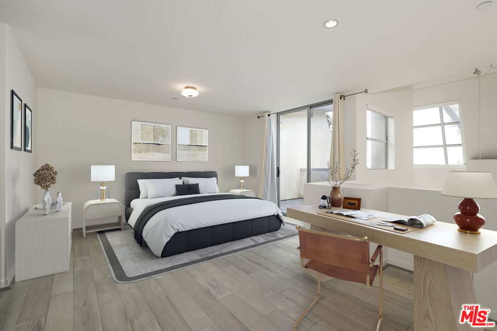 Welcome to your dream loft in Santa Monica. Enter this stunning, light-filled, top-floor loft that blends modern elegance with urban convenience. Located in the heart of Santa Monica's high-tech, medical, and entertainment corridor, this residence offers luxury, functionality, and style. Soaring 19-foot ceilings and expansive skylight windows flood the space with natural light, creating an inviting and inspiring atmosphere. Enjoy ocean views from the private balcony. Gourmet chef's kitchen with Ceasarstone countertops, stainless steel appliances and custom Boffi cabinetry. Den convertible to second bedroom. Luxurious bathrooms with custom designed sinks and cabinets create a spa-like retreat for relaxation. Smart living features include electronic blinds, security system, video intercom and key fob entry for peace of mind. Premium side-by-side parking next to the elevator. Convenient in-unit Bosch washer and dryer. Nestled in Santa Monica's most sought-after neighborhood, this loft places you moments from dining, shopping, entertainment, the beach, farmers' markets, and more!