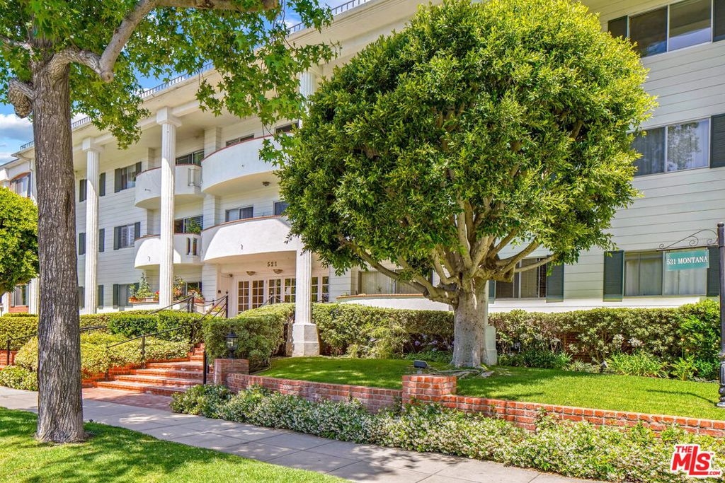 Single level, 2 bed, 2 bath contemporary beach condo, only 5 blocks to the bluffs, and 2 blocks to the 10 blocks of shopping, dining, wellness services, and amenities of Montana Avenue. Bright and well positioned south-facing unit with an open concept floor plan, hardwood flooring, plantation shutters, recessed LED lighting on dimmers, newer central air conditioner/HVAC system, crown moldings, separate dining area, and a large living room with gas fireplace. Sliding glass doors open out to a sizable bricked balcony, perfect for morning coffee or al fresco dining with friends. High-end soft carpet in bedrooms, walk in closets, and luxurious finishes throughout. Spacious master bedroom with dual sinks and additional huge hallway closet. 2 side-by-side garage parking spaces with extra storage. Building amenities include pool, gym, saunas, gated entry, elevator, and clubhouse with kitchen. HOA dues include water, trash, gas, and EQ insurance.