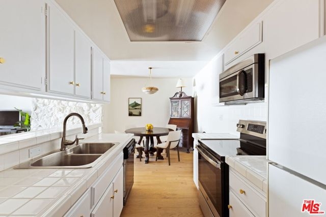 521 Montana Ave #305 is a bright and spacious top-floor condo located just blocks from Montana Avenue's premier dining, shopping, and entertainment. The beach, Ocean Avenue, and Palisades Park are just minutes away. This open and airy home features only one shared wall, ensuring added privacy, and offers a welcoming living area with a fireplace and large sliding glass doors that lead to a balcony - perfect for indoor-outdoor living. The dining area includes a built-in wet bar, ideal for entertaining, and flows into a fully equipped kitchen. The generous bedroom and bathroom provide ample comfort, featuring a walk-in closet, dual-sink vanity, tub, and separate shower. Residents enjoy resort-style amenities, including a community room, gym, sauna, and pool - all in one of the Westside's most sought-after neighborhoods, situated within the Roosevelt Elementary, Lincoln Middle, and Santa Monica High school district.