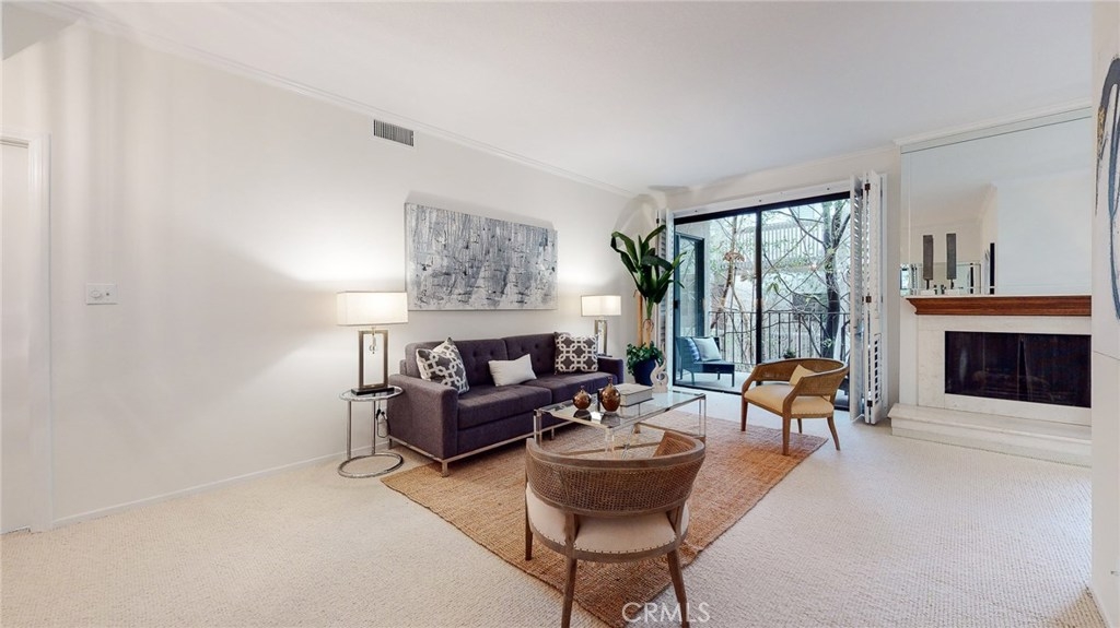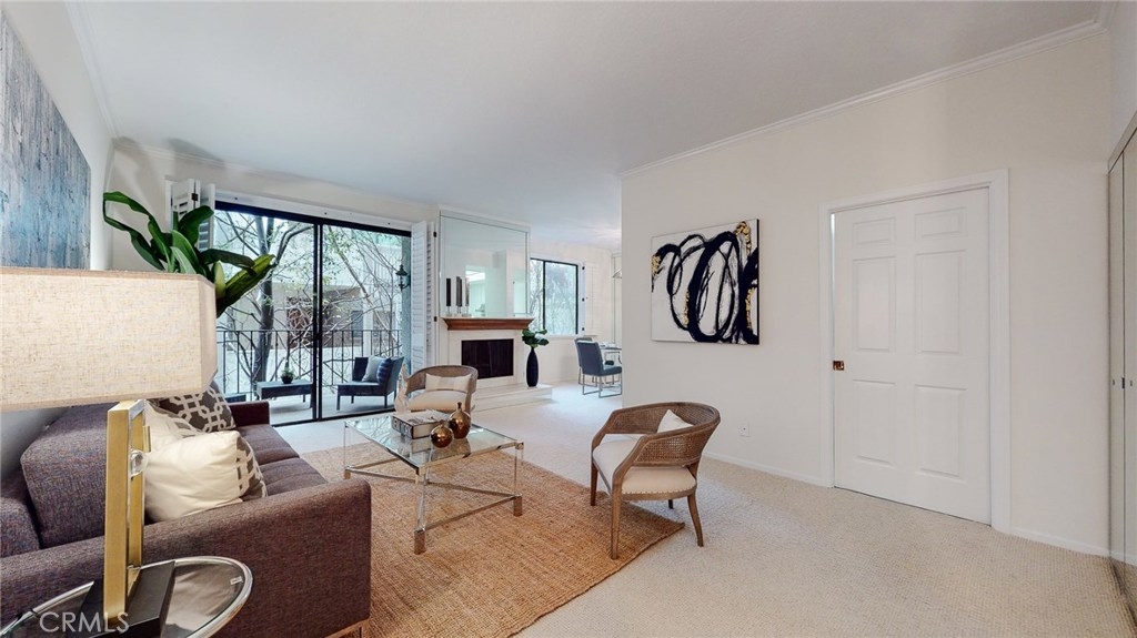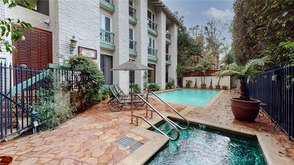 Just five blocks from Ocean Avenue this roomy one-floor two bedroom, two bath condo has been freshly painted and has approximately one-year old carpet. The condo has a large master suite with adjoining full bathroom with sunken tub and detached stall shower and walk-in closet. There is a balcony off living room and the master. Hardwood parquet floor, and wool Berber carpeting, fireplace in living room,nice dining area and washer and dryer included. There is a cool wet bar, a Bosch dishwasher and Samsung fridge. Two spaces in garage, elevator, and a pool and spa. Wood shutters.