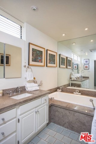 Updated single-story residence, located in prime Santa Monica. This bright and serene 2-bedroom, 2-bathroom home is set within the coveted Coral Tree Villas, a charming Spanish-style complex featuring a sparkling pool, spa, and a premier location. The great room is perfect for entertaining and includes a dining area, living room, sitting area, and fireplace along with floor-to-ceiling glass sliders. Enjoy the private, sunlit south-facing balcony which extends almost the entire length of the residence and overlooks homes on Georgina Avenue. The remodeled kitchen also has access to the balcony. Spacious master suite features walk-in closet and luxurious bathroom with dual-sinks, and separate tub and shower. Additional highlights include wood floors, plantation shutters, remodeled guest bath, and ample storage. Side-by-side gated parking plus additional storage. Just a stone's throw to Ocean and Montana Avenue, Palisades Park, and the beach. This is Santa Monica living at its finest.