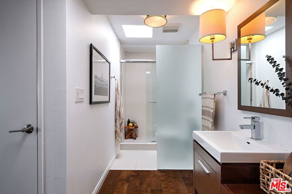 This top floor, single level, northwest facing, contemporary beach condo is the perfect spot for living in Santa Monica and is the best unit in the building affording complete privacy like no other condominium in the area. Open your front door to an open living space with windows all around that capture the afternoon light, mountain views, and magnificent California sunsets. This unit has been completely remodeled with only the highest end finishes and top of the line appliances. The kitchen features a Bosch dishwasher, Viking cooktop/stove, Fisher & Paykel refrigerator. There are beautiful hardwood floors throughout, high ceilings, tons of light, central a/c, laundry inside, attic storage and 2 side by side parking spaces with additional storage in a gated secure garage.