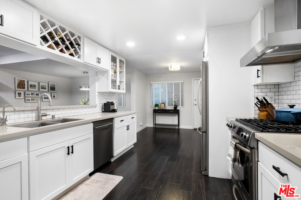 Luxurious Designer 2 bed/2 bath, 1401 sq ft condo w/ large private patio in an elevator + pool bldg in an exceptional Santa Monica location. Stunning Kitchen w/ Caesarstone counters, stainless steel appliances, & custom cabinetry. Spacious indoor/outdoor living spaces w/ beautiful espresso floors w/ hand-strewn distressed wood look & dramatic sandstone fireplace w/ drift oak mantle. Luxe Master suite features a walk in California Closet, double pane sliders w/ access to private patio & en-suite dual vanity master bath, frameless glass shower & designer tiles. 2nd updated bdrm features a bath w/ large frameless glass shower & tub w/modern vanity & cabinets. In-unit Electrolux washer & dryer, Custom Shades, LED lighting, dual-pane windows & much more! Bldg has gated access, resort pool & spa, BBQ, extra large Storage room, 2-car gated side-by-side parking & Equake insurance. Blocks from the best restaurants & cafes of Ocean Park & Pico. Checks all the boxes!