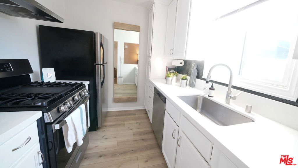 Welcome to your private Santa Monica retreat! This beautifully maintained 1-bedroom, 1-bathroom residence is tucked inside a lush, garden-style community that feels like a hidden oasis in the heart of the city. Surrounded by mature landscaping, vibrant greenery, and charming pathways, this peaceful setting offers a rare blend of tranquility and coastal convenience.The unit itself is light, bright, and thoughtfully updated, featuring warm wood flooring, a spacious living area, and a clean, modern aesthetic throughout. Large windows invite in abundant natural light, creating an airy and inviting atmosphere. The living room flows effortlessly into a cozy dining area, while the kitchen offers sleek countertops, ample cabinetry, and updated appliancesperfect for everyday living and entertaining.The bedroom is generously sized with a calming ambiance, complemented by a well-appointed bathroom and ample storage. Every space has been carefully maintained to provide comfort, functionality, and style.This charming complex is small, quiet, and exceptionally well cared for, with a true sense of community and many long-term residentssomething that truly speaks volumes. Additional highlights include a large gated parking area at the rear, offering both convenience and security.Ideally located just moments from the beach, this home is within walking distance to Santa Monica's best dining, shopping, and top-rated schools. Whether you're enjoying the coastal lifestyle or relaxing in your serene garden surroundings, this property delivers the best of Santa Monica living.With super low HOA dues and an unbeatable location, this is an incredible opportunity to own a piece of one of LA's most sought-after neighborhoods.Location, lifestyle, and valuethis one has it all. Once you're here, you won't want to leave.