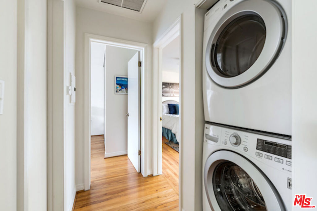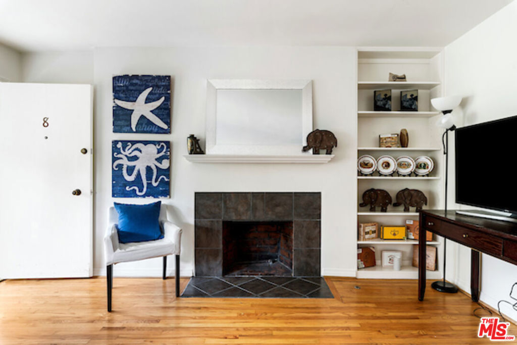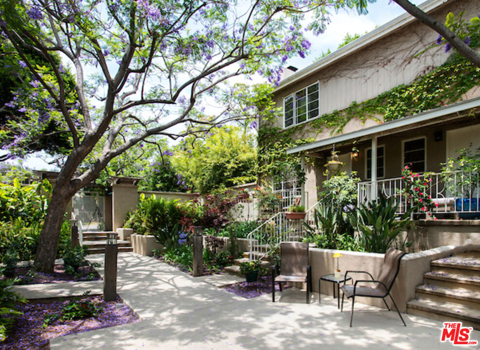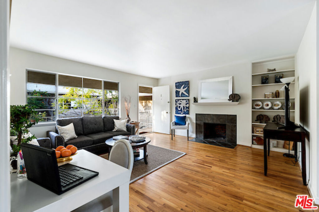 Santa Monica Condo in a Magical Vintage Courtyard Complex. Hardwood floors throughout with a spacious living area and room for office desk. Granite tiled woodburning fireplace, lots of shelving built-ins throughout. Beautifully updated kitchen with stainless steel appliances and quartz countertops, lot of cupboard space and subway tiled back splash. Wonderfully designed full bath with double sink, Inside Laundry and central heat and ac. Generous sized bedrooms w/ ceiling fans. Lovely outside patio area overlooking the gorgeous lush garden.This gated garden home has controlled access and offers a one car garage with easy street parking w/ permits for additional cars. Homeowners dues include water and earthquake insurance. Close to shops, restaurants, services and minutes to the beach