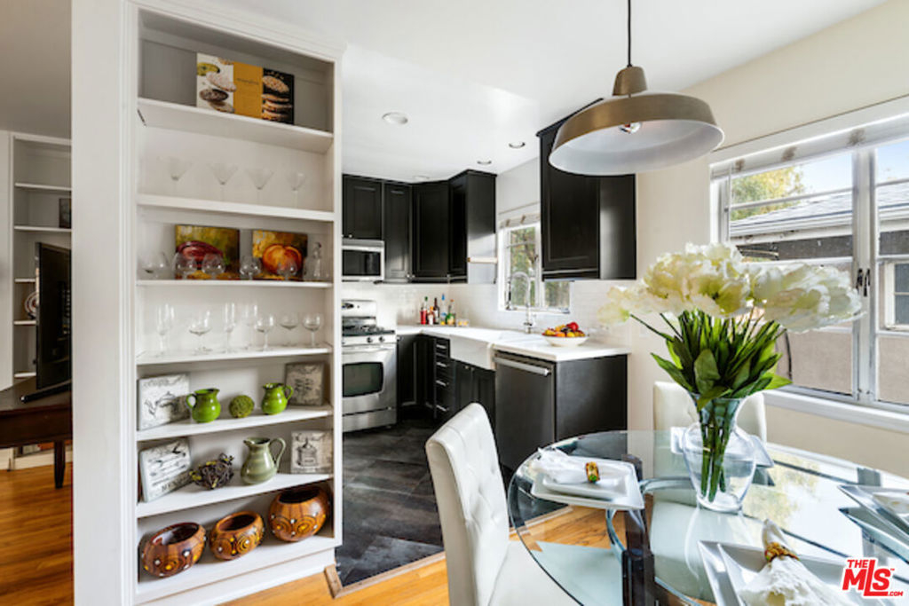 Santa Monica Condo in a Magical Vintage Courtyard Complex. Hardwood floors throughout with a spacious living area and room for office desk. Granite tiled woodburning fireplace, lots of shelving built-ins throughout. Beautifully updated kitchen with stainless steel appliances and quartz countertops, lot of cupboard space and subway tiled back splash. Wonderfully designed full bath with double sink, Inside Laundry and central heat and ac. Generous sized bedrooms w/ ceiling fans. Lovely outside patio area overlooking the gorgeous lush garden.This gated garden home has controlled access and offers a one car garage with easy street parking w/ permits for additional cars. Homeowners dues include water and earthquake insurance. Close to shops, restaurants, services and minutes to the beach