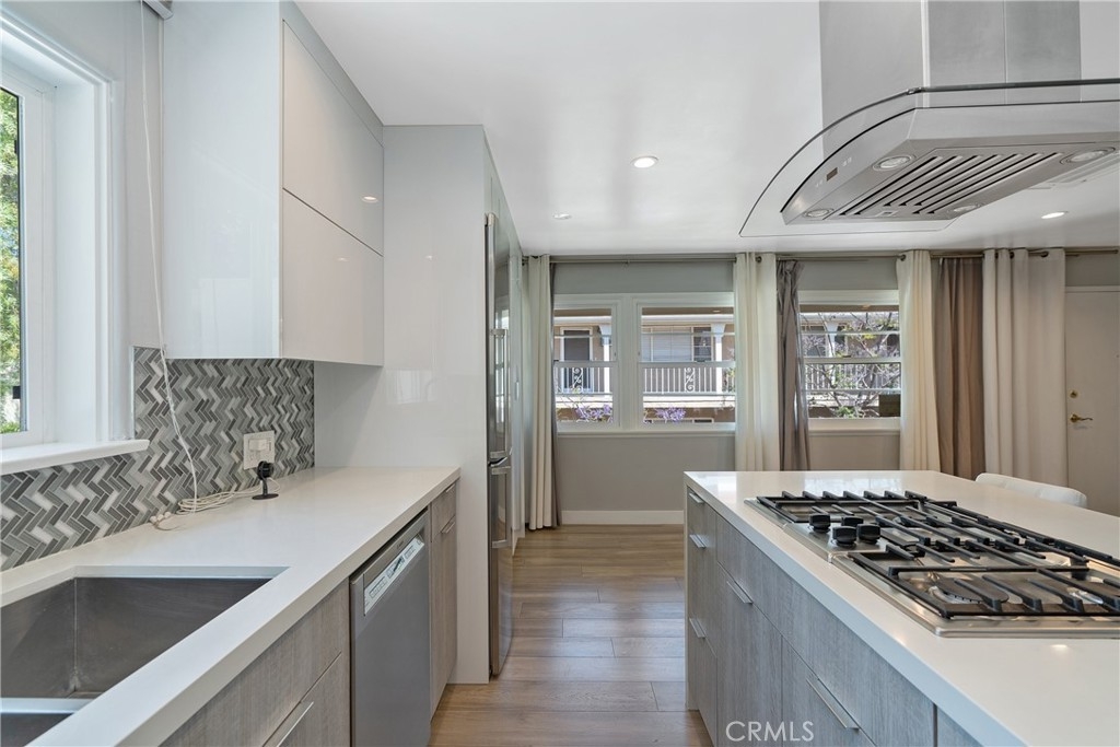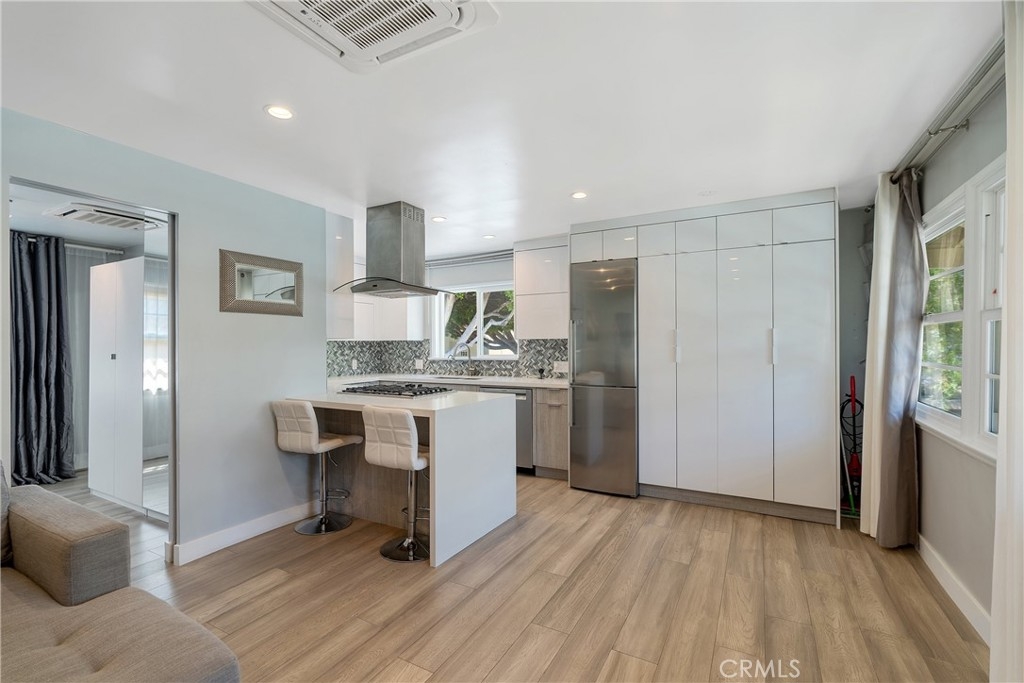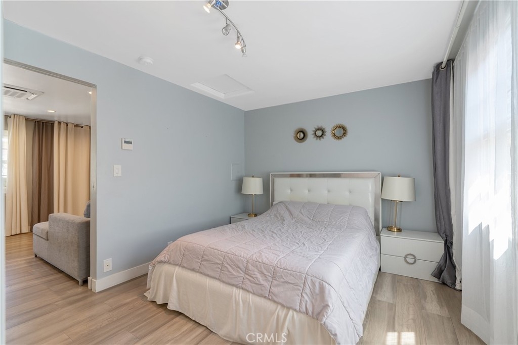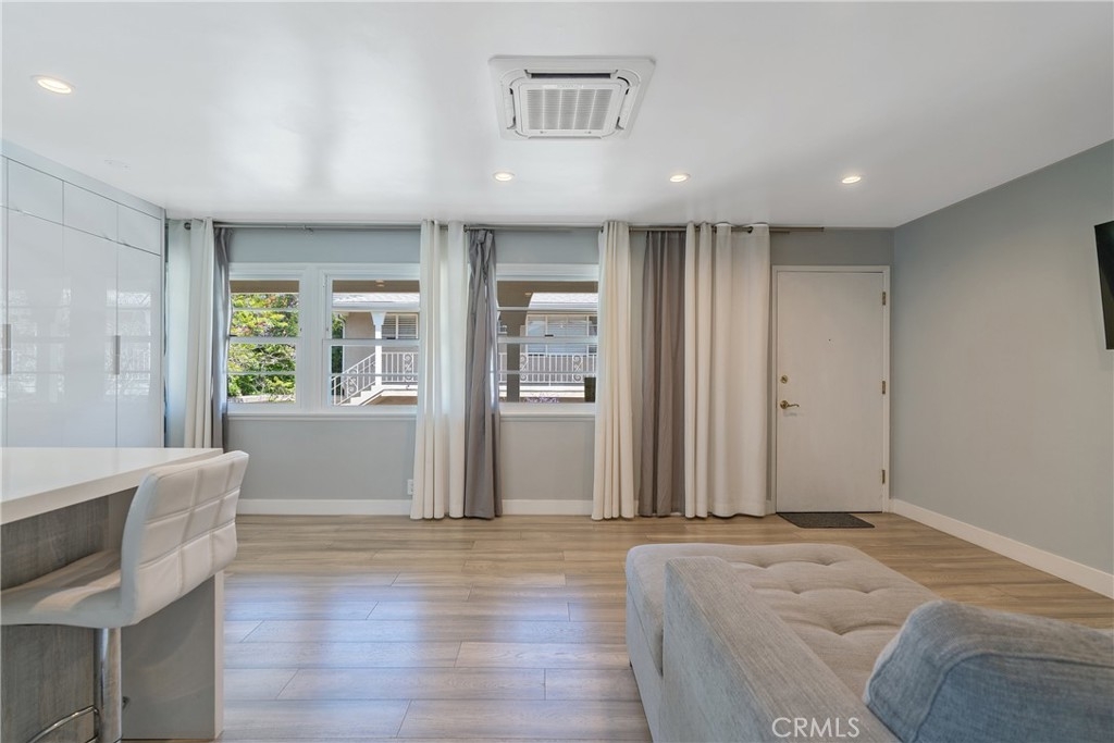 Situated on a tree lined street, this beautifully renovated top floor corner unit is located between Santa Monica Blvd and Arizona Avenue. It's a must see property which features remodeled kitchen with quartz countertops, stainless steel appliances, inside laundry, updated bathroom, updated windows, newer wood floor, central air conditioning and heat. This unit comes with a one car private garage including storage located on Franklin Street for easy access to and from the unit. Peaceful court yard community that is gated, with lush interior garden areas that are unique and tranquil. Close to the best of Santa Monica's restaurants, shopping and night life.