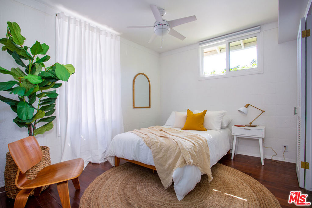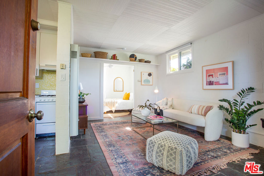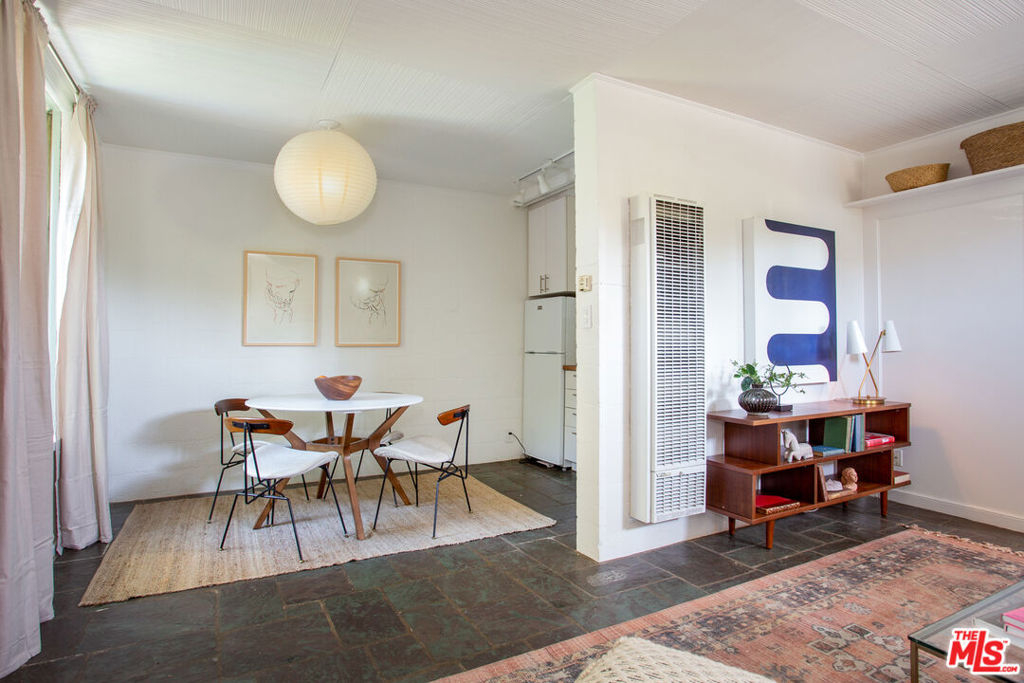 Hidden behind hedges in a magical courtyard, this cozy corner unit features slate floors, masonry walls, vintage 50's bathroom tiles, wood floors in the bedroom and wide windows looking out onto verdant foliage and a lovely little patio. Incredibly convenient location directly across from Virginia Park & it's Saturday Farmers' market. Next to Whole Foods, 3 blocks from the Expo Line, close to the 10 Frwy, Bergamot Station & shopping and restaurants on Pico. One car gated and covered parking.