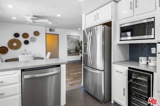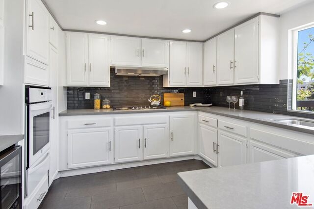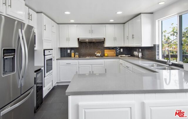 Experience Santa Monica living at it's finest. Located in prime Santa Monica just South of Montana Avenue in the highly sought after Lincoln Fountain Villas, a unique and contemporary style building. This fabulous remodeled one level condo is a South East top corner unit filled with tons of natural light. Meticulously remodeled with new wood floors, quartz countertops, built in wine fridge and all new appliances. Enter into sun drenched living room with raised ceilings, skylights and two balconies. The master bedroom has a large skylight, walk-in closet and a spacious bathroom with dual sinks and vanity. Other features include open floor plan, in unit laundry, large private two car garage with storage, convenient elevator access, controlled access building, large community roof top sun deck with city, mountain and ocean views perfect for entertaining. Steps away from the trendy Montana Avenue shops and restaurants, near Third Street Promenade and just 8 blocks to the beach!