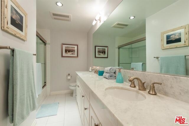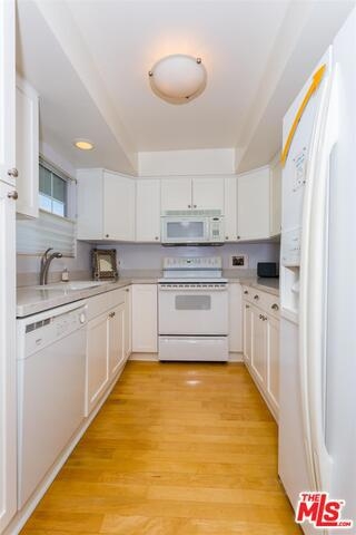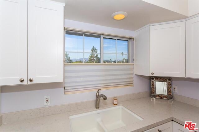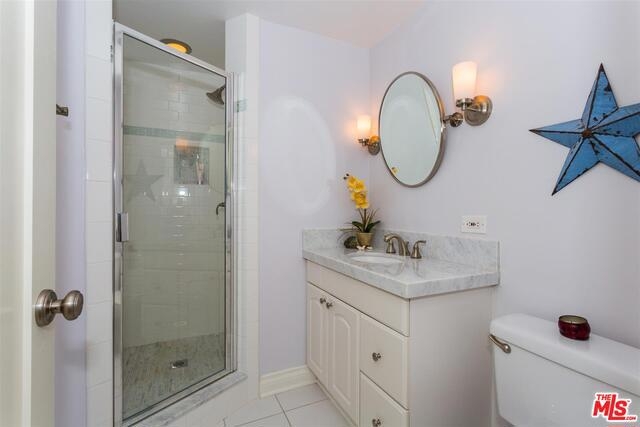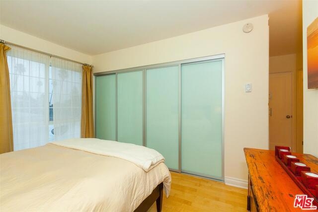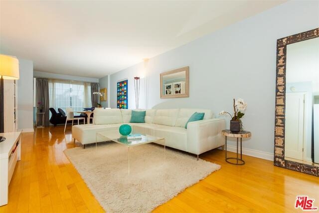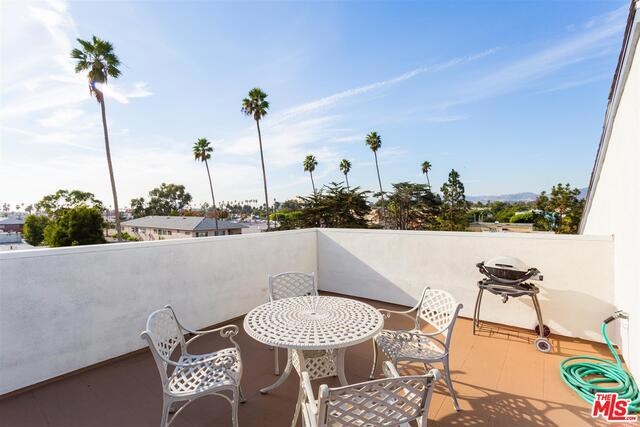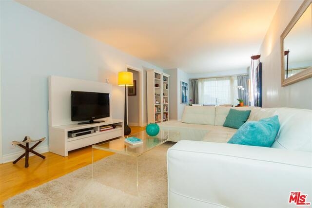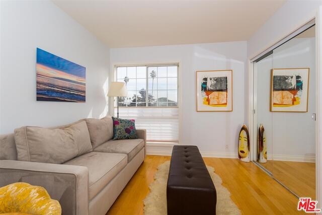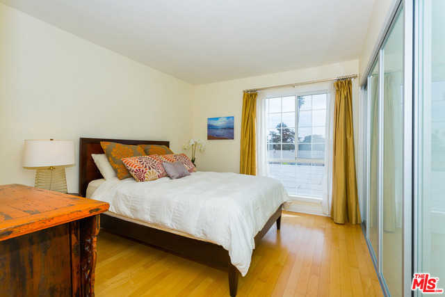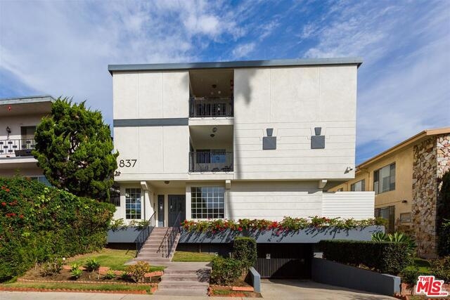 Bright & beautiful top floor unit w/tree top & mountain views from every room. Ideal Santa Monica location just S. of Montana w/great walkability to markets, great restaurants & Ocean. This single level 2bd, 2bth is flooded w/natural light & has a lovely open living area w/ maple floors. The remodeled kitchen offers ample cabinets, Caeserstone counters plus Kohler faucet & sink. The en-suite Master features 2 custom California closets, 1 w/custom glass sliding doors & convenient upright W/D. A renovated Master bath includes new tiles for the shower & floor, white Carrera marble countertop & dual sinks. Renovated guest bath features marble countertops & restoration hardware mirror/lighting. The unit has custom shades & new doors. There is a common-area spacious roof deck with a new BBQ & great views. Complex was recently upgraded with new roof, gutters, paint, flooring on entry level & intercom system. Gated garage plus storage locker. First showings to be at Brokers Open on Tues