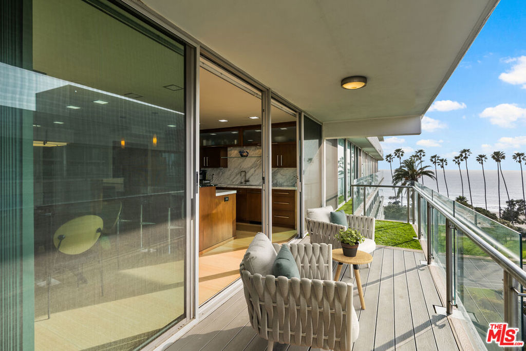 Located on the 8th floor of the prestigious Oceanaire building, designed by renowned architect A. Quincy Jones, this exquisite residence boasts an open floor plan with walls of glass and floor-to-ceiling sliding doors that lead to an expansive wraparound balcony. This tastefully remodeled two-bedroom home offers breathtaking ocean, mountain, and city views. The custom-designed kitchen features marble countertops, high-end appliances, and bamboo flooring, blending style with functionality. Residents of the Oceanaire enjoy an array of upscale amenities, including an elegant lobby, fitness facility, a conference room, a tranquil Zen Garden with a fire pit, and 24-hour doorman service. Situated in a prime Santa Monica location, this residence is just moments from the Third Street Promenade, Ocean Avenue's renowned dining, the boutiques of Montana Avenue, and the scenic Palisades Park.