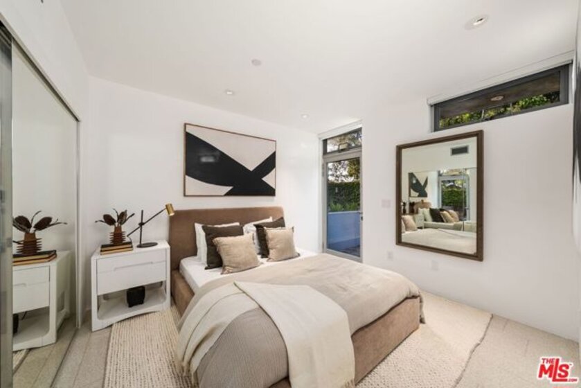 Seller offers a rate buy down to qualified buyer. Located in an architecturally significant building in Ocean Park designed by Michael Folonis, this residence sits in one of the Westside's most desirable neighborhoods. Just moments from the ocean, shops, restaurants, and cafes, it offers the perfect balance of relaxed coastal living and urban convenience. Positioned at the front of a rare three-unit building, the home features glass on three sides, filling the interiors with natural light and refreshing ocean breezes. A dramatic three-story atrium and staircase accentuate the sense of openness. Ceiling heights ranging between 8 and 20 feet create an atmosphere that is at once warm and grand, tied together with thoughtful architectural details. The main living area features floor-to-ceiling glass walls with views stretching toward the ocean, complemented by a balcony ideal for enjoying coastal breezes. The open kitchen and dining area are designed for entertaining, finished with Bianco Romana granite stone, custom wood veneer cabinetry, soaring ceilings, and a clerestory window that floods the space with light. A full bathroom on the main level adds convenience for guests. On the lower level, the spacious primary suite offers Claro Walnut wood veneer closets on two sides and direct access to a private patio enclosed in frosted glass for privacy. The ensuite bathroom showcases Italian Statuarieta stone, dual sinks, a frameless glass waterfall shower with dual Dornbracht fixtures, and sleek finishes throughout. Two additional bedrooms, each generously sized, share a full bathroom also finished in Statuarieta stone. One bedroom includes private outdoor space. Above the main living level, a mezzanine provides the perfect home office or lounge, leading to a private rooftop deck with treetop, neighborhood, and ocean views. This is an exceptional space for year-round entertaining. Additional features include in-unit laundry, secure private access, and two side-by-side parking spaces in a gated underground garage. This is a rare opportunity to live in an architecturally significant residence in the heart of Santa Monica, designed for the most discerning buyer.