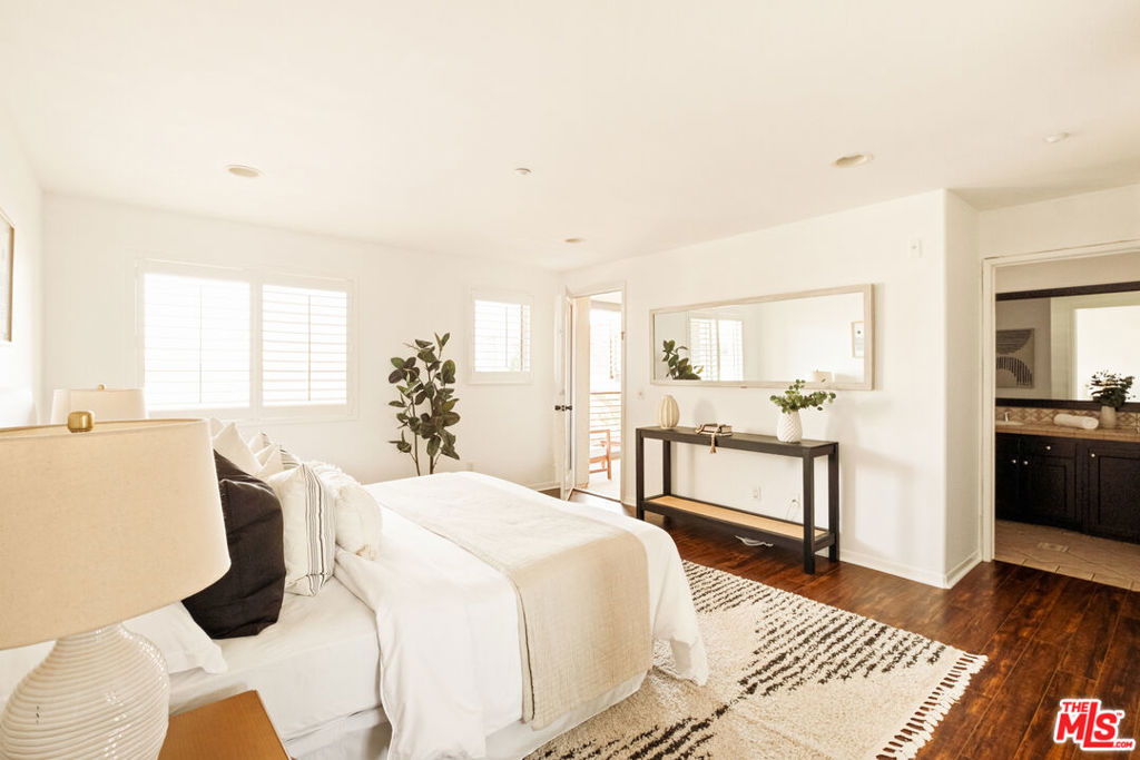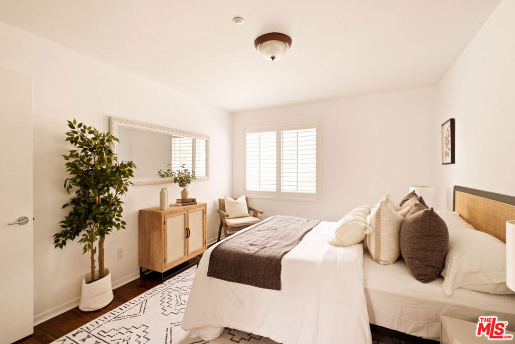 Just moments to the best of Sunset Park, this spacious 3-bedroom, 2.5-bath townhome offers nearly 2,000 sq.ft. of living space, plus a private 2-car garage with direct entry, and a floorplan that lives like a single-family home. Inside, a formal entry opens to a warm and open living area with wood floors, recessed lighting, plantation shutters, and a gas fireplace. Just off the living room, a large, fully fenced patio with turf creates the perfect setting for outdoor dining or relaxed lounging. The oversized kitchen features stone counters, stainless steel appliances, ample cabinet space, and a natural wood breakfast bar that flows into the dining area - ideal for entertaining or everyday meals. A powder room and large coat closet complete the main level, along with direct access to a private garage that includes built-in storage, laundry, and extra space for bikes or gear. Upstairs are three generously sized bedrooms, including a primary suite with three closets (including a walk-in), a private balcony, and an en-suite bath with dual sinks. Two guest bedrooms face the tree-lined street and share a hallway bath, also with double sinks. Additional highlights include central air and heat, excellent closet space and storage throughout, and guest parking in a renovated, 20-unit complex with a strong HOA, friendly, community-oriented neighbors, and HOA dues that include earthquake insurance. Just blocks to Bob's Market, parks, Will Rogers Elementary, gyms, and Sunset Park's best restaurants and cafes - plus only 11 blocks to the beach - this home blends scale, function, and location in one of Santa Monica's most desirable neighborhoods.
