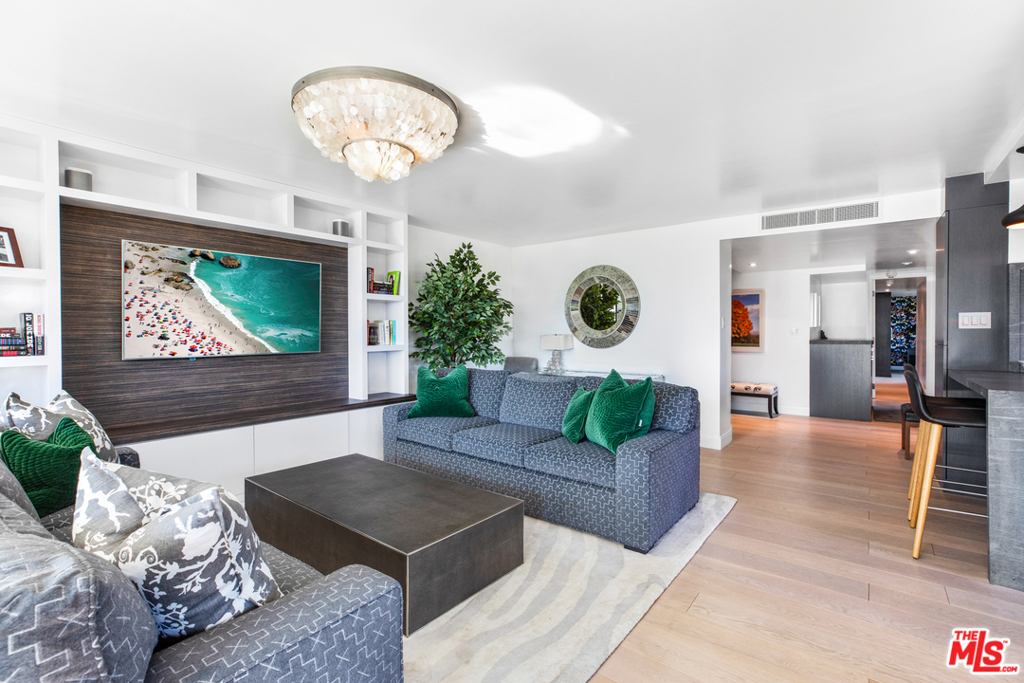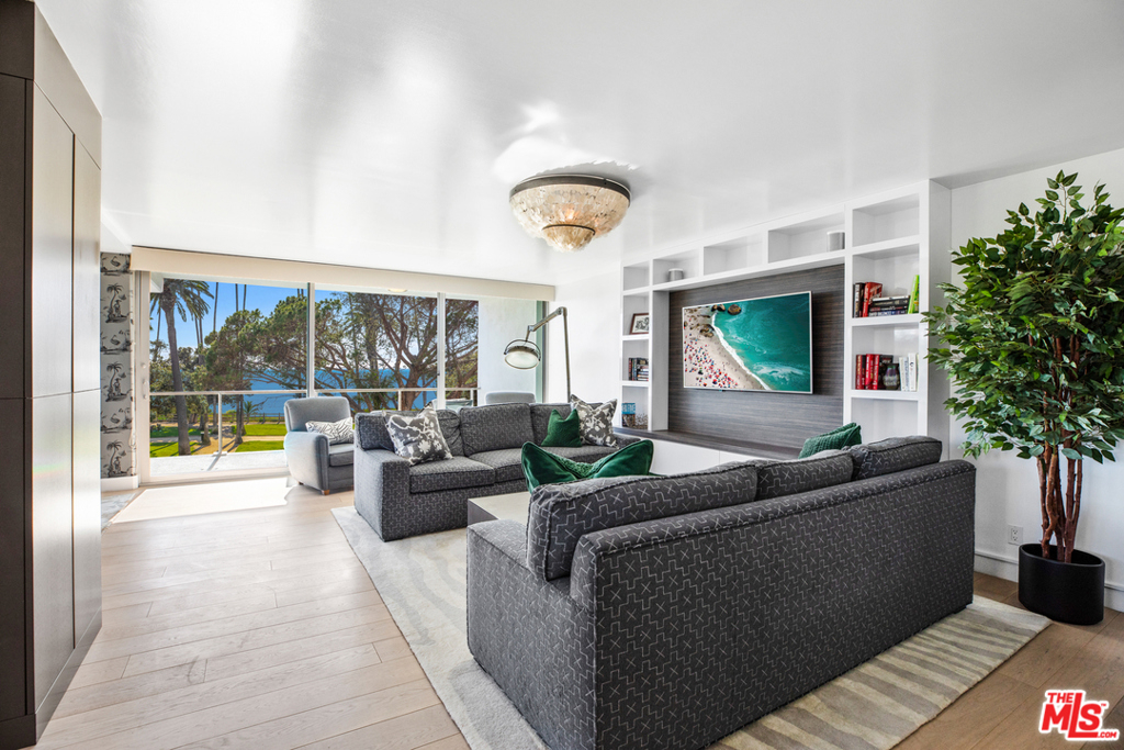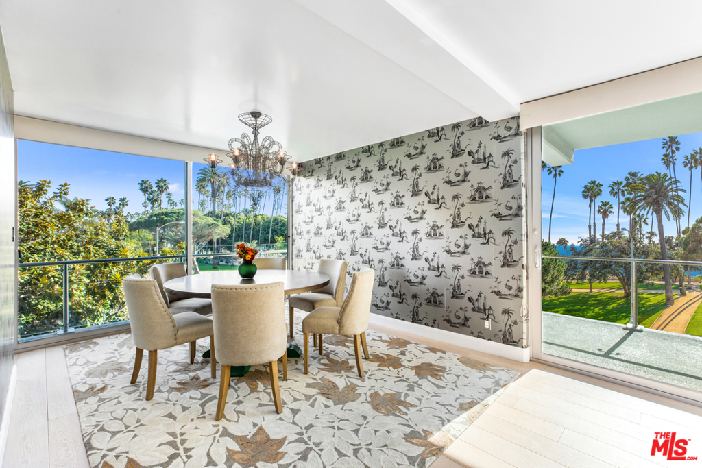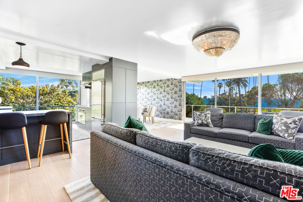 This luxury condo, in the prestigious Oceanaire building, is designed by world-renowned architect A. Quincy Jones. In the most desirable corner of the building, it boasts unobstructed ocean, mountain, and park views from Pales Verdes to Malibu. This gorgeous residence has been impeccably remodeled, featuring an open floor plan, wood floors, floor to ceiling Fleetwood sliding doors, a state of the art kitchen with marble countertops, Sub-Zero and Bosch stainless steel appliances, all opening to a sprawling living area with a built-in media unit and bookshelves. During the day, the dining room is flooded with natural light. By twilight, dinners are enjoyed by watching the sunsets over the Ocean. A wraparound balcony creates a wonderful indoor/outdoor flow that epitomizes the California lifestyle. En suite laundry with Bosch washer and dryer, two designated parking spaces, and storage. Building amenities include 24-hour concierge/security, Zen garden, fitness center, and conference room.