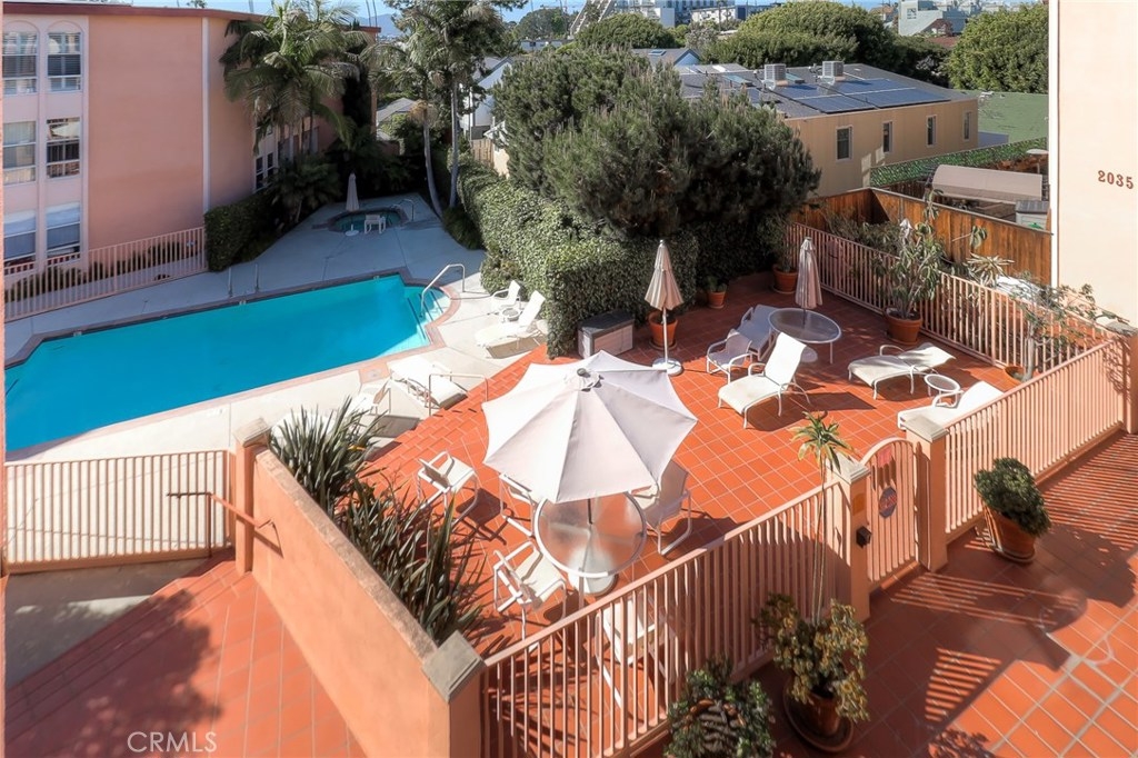 3D virtual tour: https://my.matterport.com/show/?m=YwTH7tssi6y&mls=1 This charming 1 bedroom 1 bath condo located on the top floor in the Pacific Bay Condo Community is only 4 blocks to the Santa Monica Beach and 2 blocks to the Main Street Shops, Restaurants and Coffee Houses. Less than 1 mile is the renown 3rd Street Promenade and Santa Monica Malls and Pier with more shops, wine tasting and restaurants. This resort style community offers an observation deck for surrounding views, a heated pool and spa, laundry facility and a tranquil courtyard for relaxation and bath in the Pacific Ocean breeze. Spacious living room with a coat closet has sliding glass doors to access a large private balcony. Kitchen has refrigerator, dishwasher, microwave, utility closet and a separate wine cooler. Large bedroom has two generous size walk-in closets. A full bath has tiled counter and tub/shower. This unit is filled with natural light and bright. Views of the pool, mountains and city lights can be seen from the master bedroom and balcony. Assigned parking is adjacent to the elevator and only a few feet to the unit once exit the elevator. This home is the Southern California beach town lifestyle at its best!