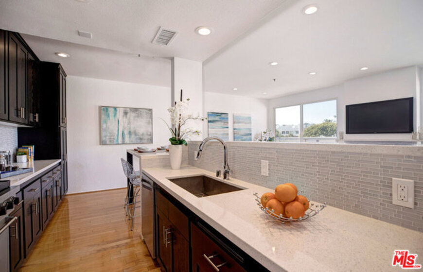 Stunning remodeled condo located only one block from scenic Ocean Avenue and all of the wonderful things Santa Monica living has to offer. Gorgeous kitchen with stainless steal appliances including Viking range, farmhouse sink, granite counter tops and storage galore. The open bright floor plan offers great space for entertaining or relaxing and enjoying the ocean breeze on your secluded patio area, complete with sunset vistas. Two nice sized bedrooms + two remodeled baths complete the floor plan. Features also include inside laundry + secured parking. A great place to call home!