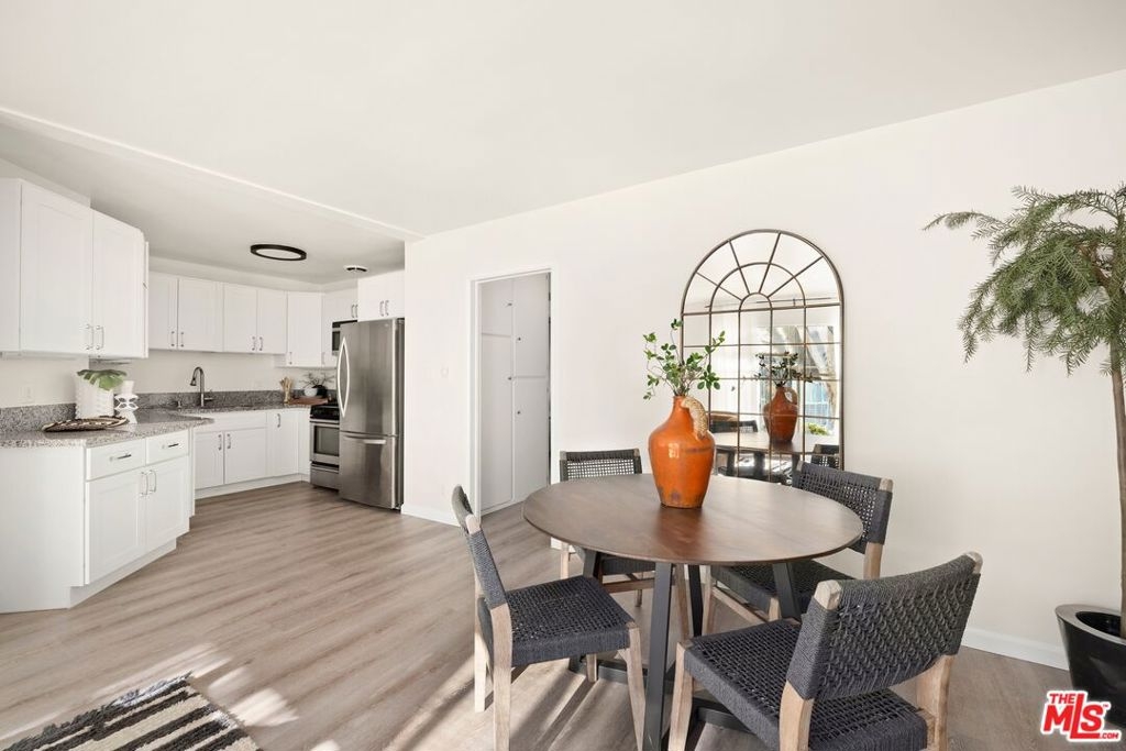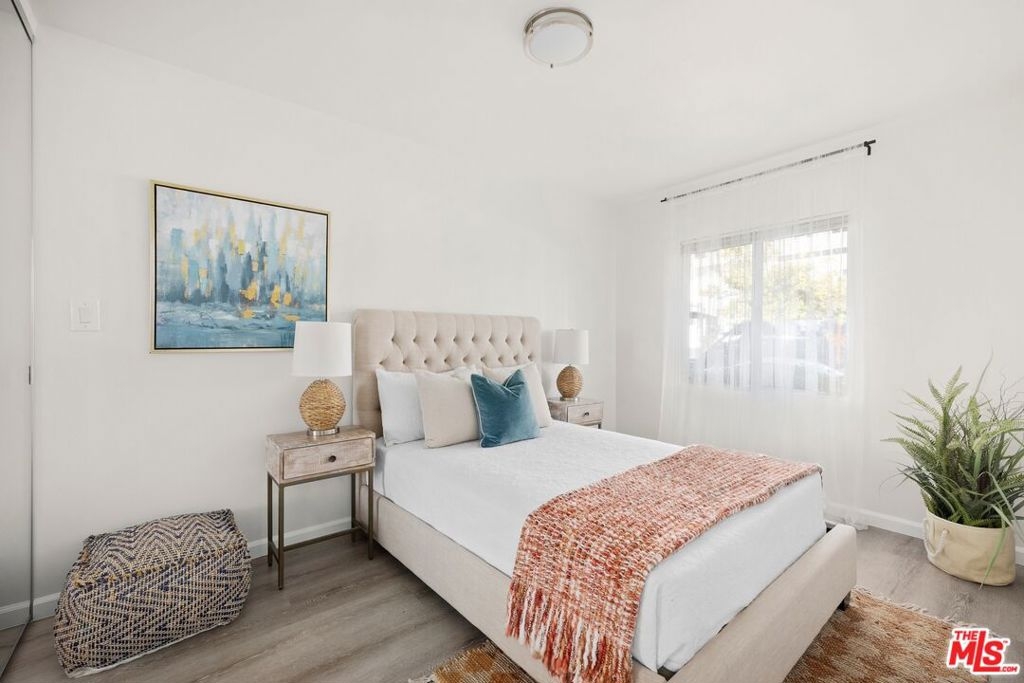 Discover this beautifully updated poolside retreat in the heart of Santa Monica! This 2-bedroom, 1-bathroom home offers an open floor plan ideal for modern living and entertaining. The spacious living room flows seamlessly into a stylish kitchen, featuring contemporary cabinetry, stainless steel appliances, and a sleek refrigerator. The engineered hardwood floor leads to the primary and guest bedrooms, both offering generous closet space and cordless blinds for added safety and privacy. The reimagined bathroom boasts contemporary finishes, while the community washer and dryer are conveniently located near the unit. Installation of in unit washer and dryer available with HOA approval. Additional perks include a designated parking space with lots of storage and a controlled-access entry for peace of mind. Relax by the well-maintained pool and enjoy the inviting ambiance of this coveted community. Situated just one block south of Wilshire near 26th Street, this home provides quiet and relaxation from the busy streets with easy access to Santa Monica's finest shops, restaurants, schools, parks, and the Metro Line. This unit is the perfect blend of style,comfort, and location an opportunity not to be missed!