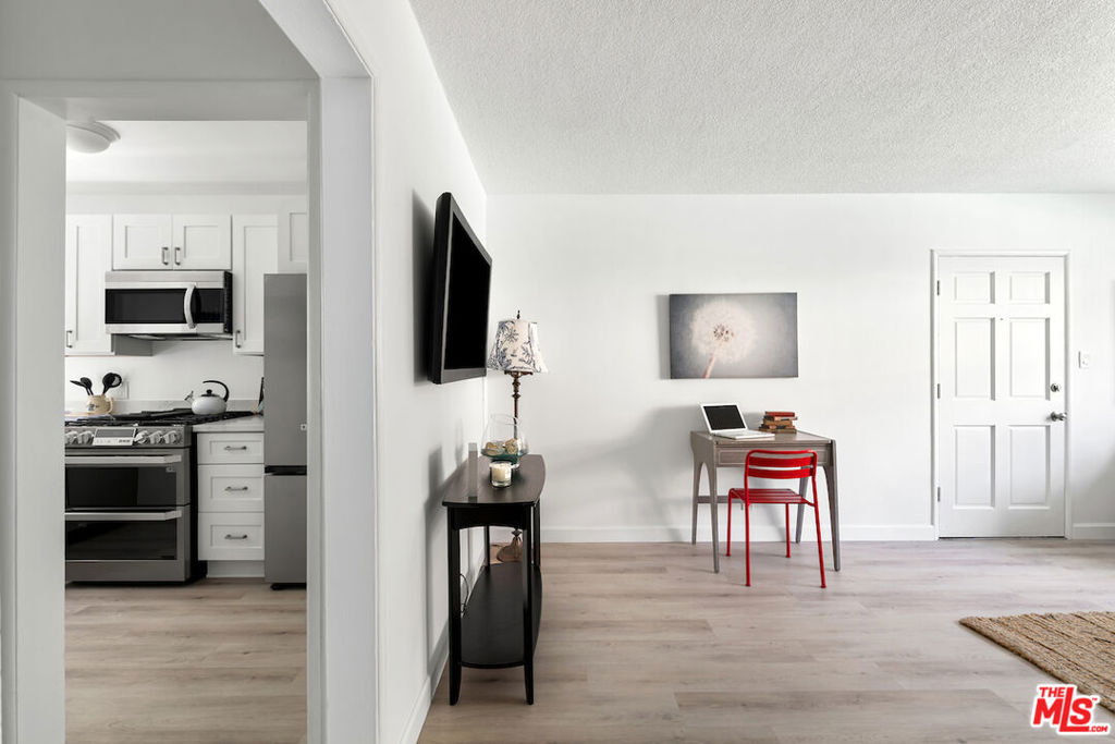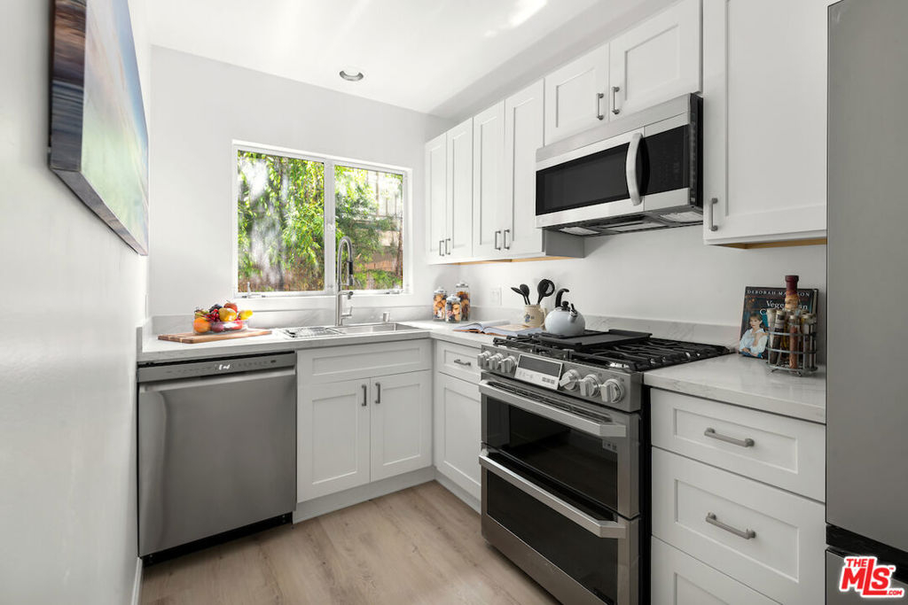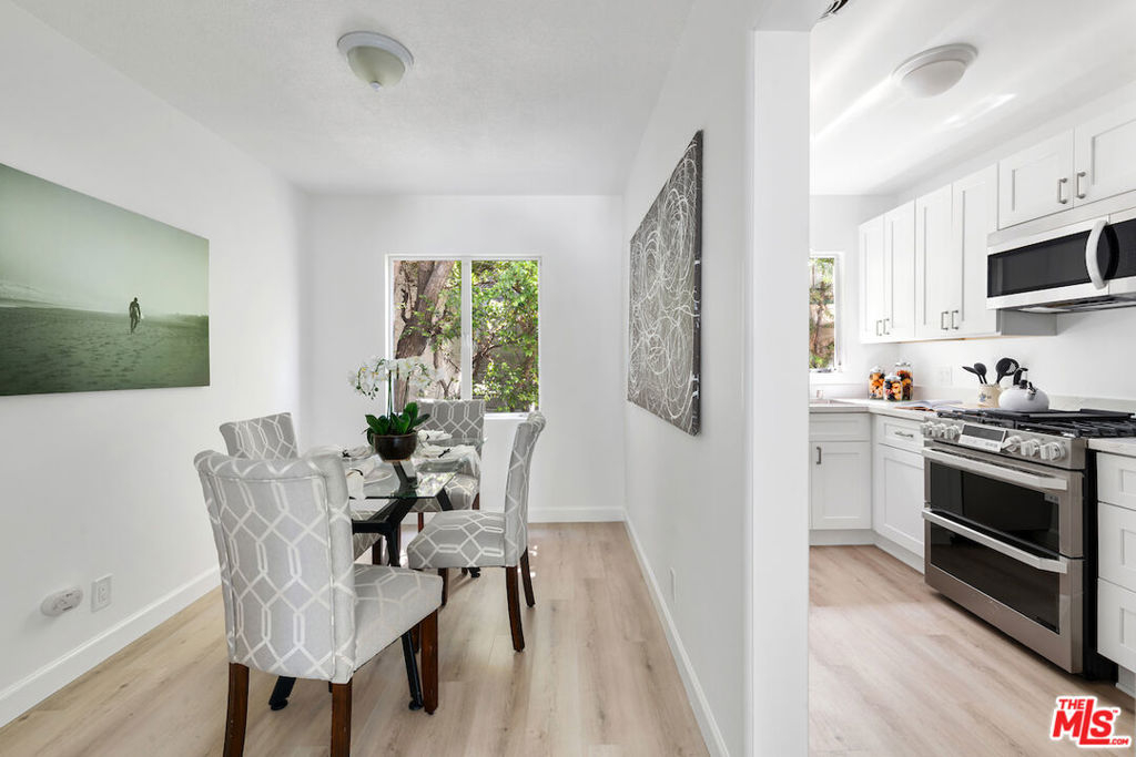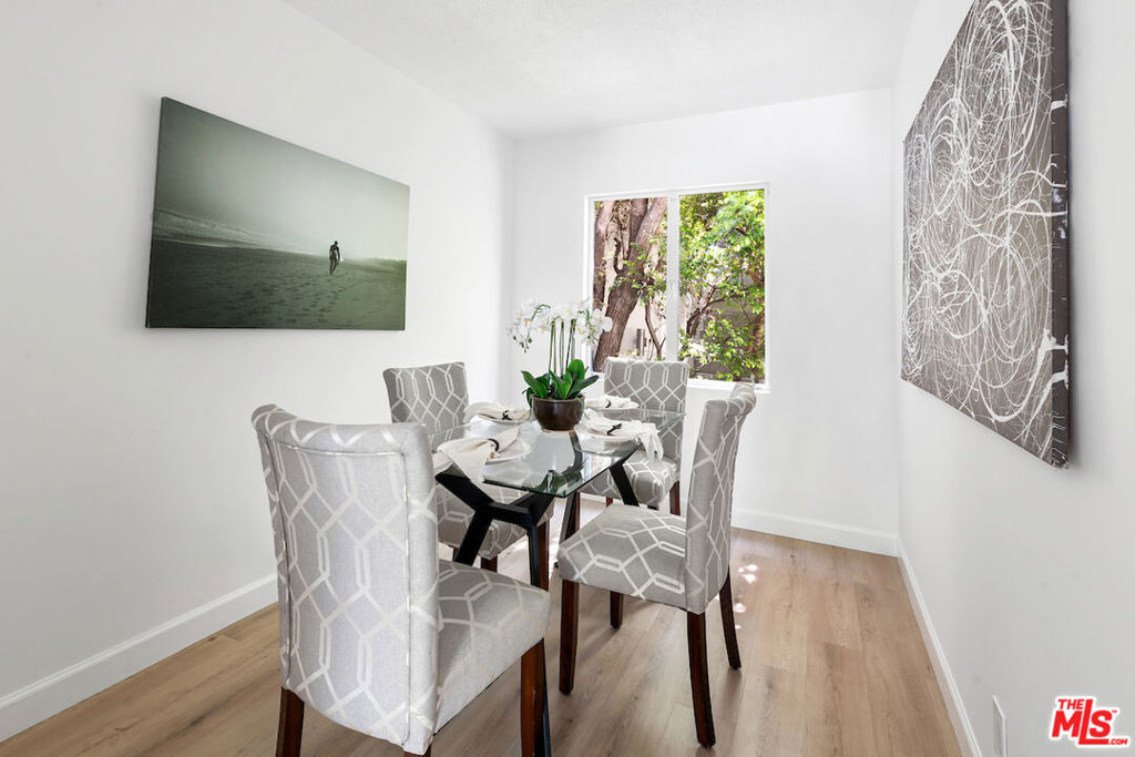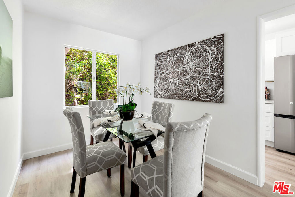 Modern Lifestyle Living Close to Santa Monica Beach. Totally remodeled condo with luxury wood-like vinyl flooring throughout. Separate dining room and inside laundry. Well equipped kitchen with lots of cupboard space and brand new stainless steel appliances. Great greenery views throughout and a Tastefully remodeled bathroom. The Princeton South Condominium is a 19 unit building complex with controlled access. This 1956 beautiful vintage courtyard complex has a pool. Low homeowners dues include water. Enjoy everything Santa Monica has to offer only minutes to the beach. Close proximity to Douglas Park, Trader Joe's, Erewhon, Bristol Farms, restaurants, bars and services